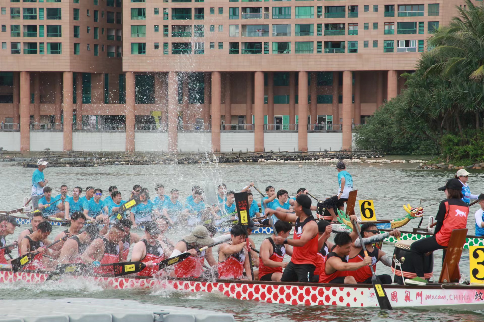 【即時新聞】今日是農曆五月初五端午正日,由體育局、澳娛綜合、中國澳門龍舟總會主辦,市政署及行政公職局協辦的“2024澳娛綜合澳門國際龍舟賽”,於南灣湖水上活動中心進行壓軸日賽事,多支來自內地、香港、泰國、新加坡、印尼、柬埔寨及菲律賓等國家/地區高水準隊伍,與本澳龍舟隊伍爭奪錦標殊榮,吸引大批市民和遊人到場觀賽,吶喊助威現場氣氛熱烈。