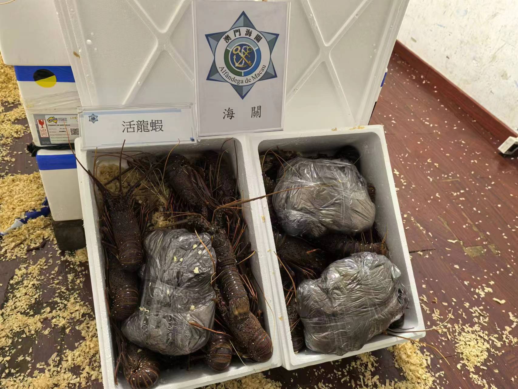【即時新聞】海關今(4)日搗破一個位於關閘附近水貨散貨點,該散貨點於祐成工業大廈某層一個單位,檢獲285公斤活龍蝦,合共市值廿二萬澳門元。