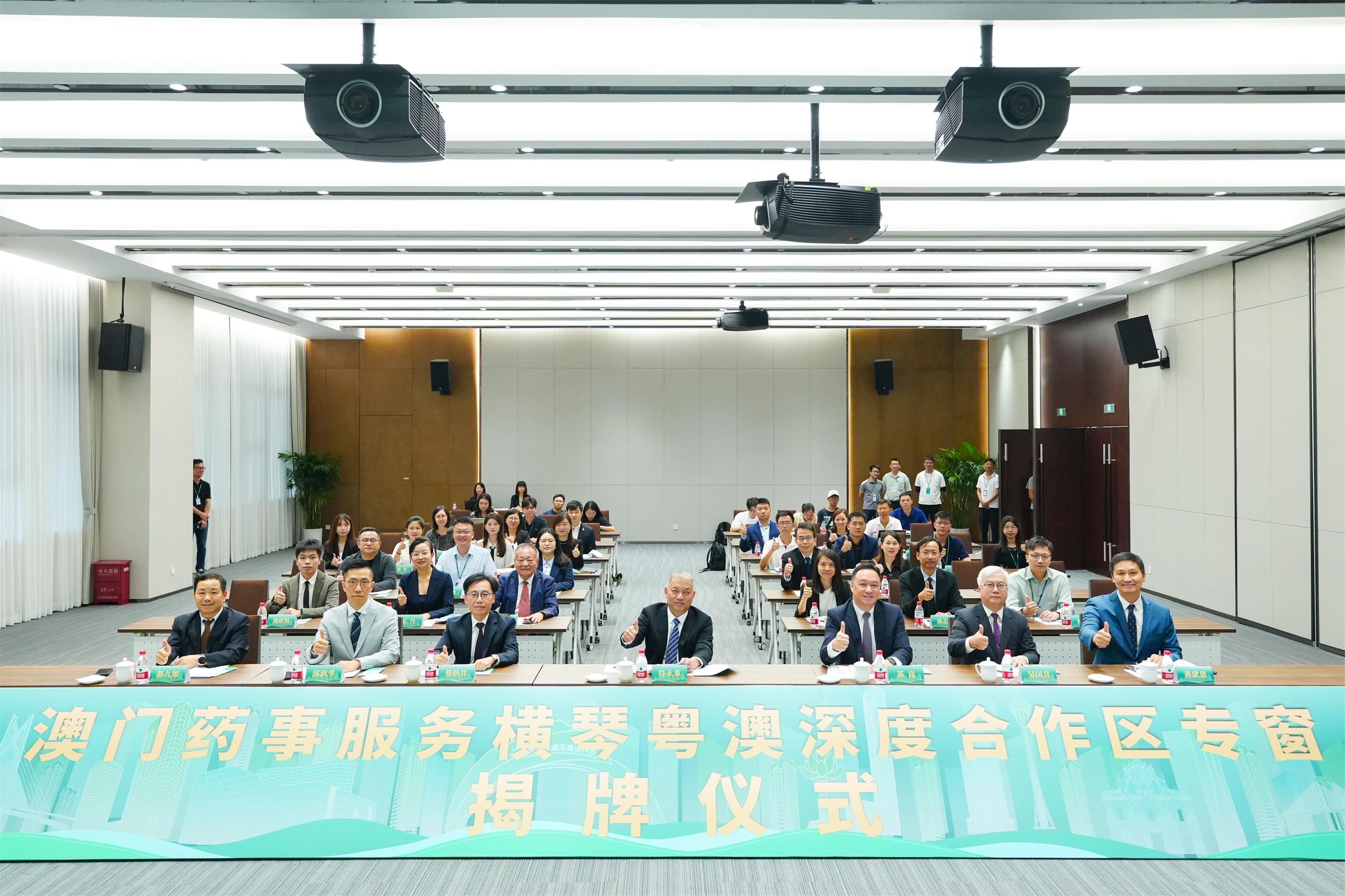 深合區執委會符永革副主任、蘇崑副主任,澳門藥監局蔡炳祥局長、吳國良副局長,珠海市市場監督管理局黃建恩副局長,深合區商事服務局邱潤華副局長、彭九如副局長,珠海市藥學會黃騰邈會長以及企業代表參加儀式。