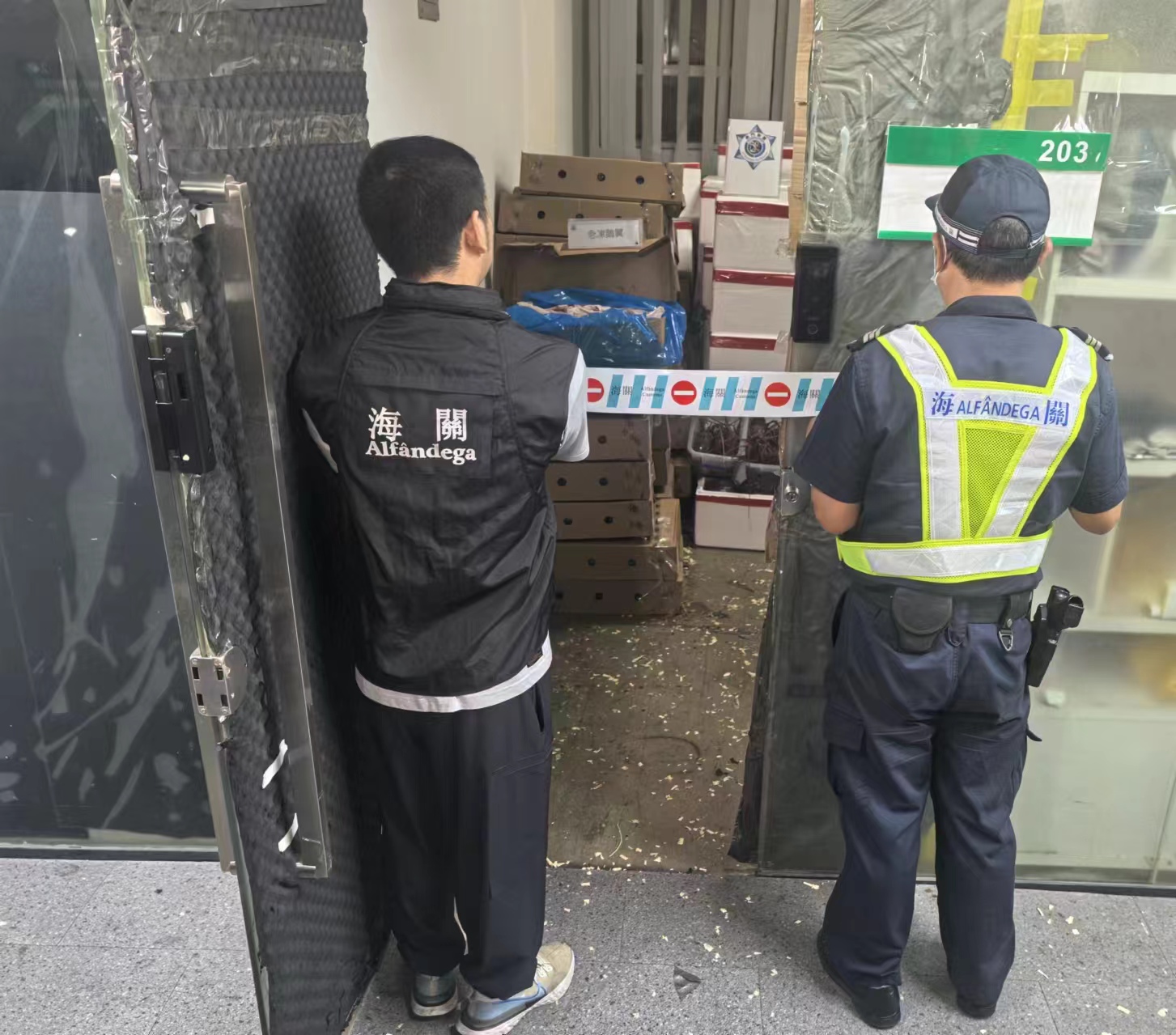 澳門關檢處余展強代處長指出,海關經過近日對水貨活動趨勢分析,加強對市內各大工廈巡查。經過調查和監視,於今日傍晚在目標單位內搜獲價值約19萬澳門元食材,並截獲一名涉案男負責人。