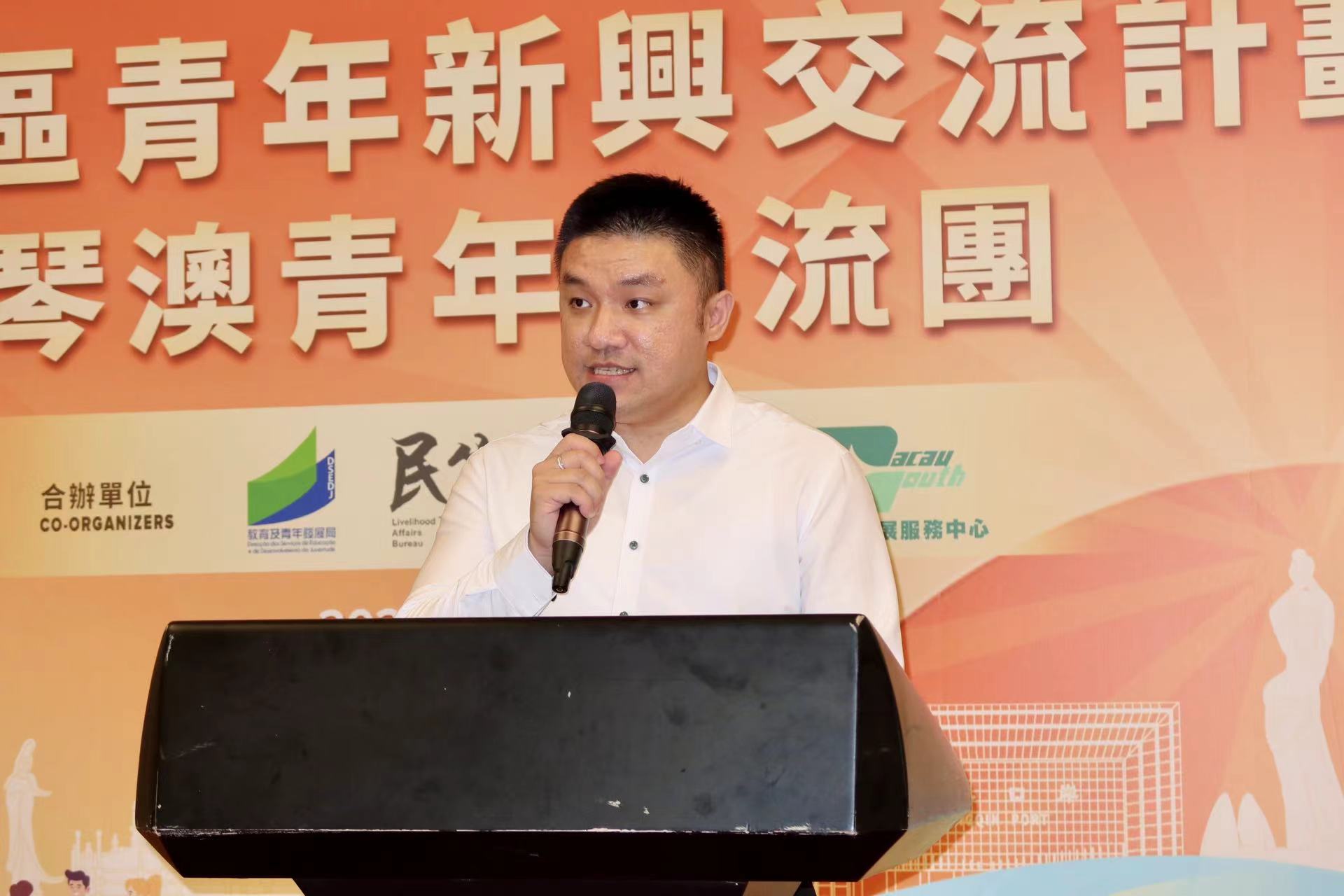 中午,交流團在星樂度星悅廳舉行開幕典禮暨午宴。青服中心副總幹事黃滋才致辭表示,深合區不僅為青年提供了豐富的商業機會,還通過財稅優惠、就業創業扶持、技術轉移平台等一系列措施,為青年創業和就業提供了優越的環境。通過這次活動,澳門青年將親身體驗橫琴的快速發展,探索大灣區內各個領域的無限商機。他鼓勵澳門青年充分利用這些資源,抓住時代賦予的機遇,發揮自身潛力,成為推動大灣區發展的重要力量。青服中心也會矢志不渝地促進青年的全面成長與發展,積極搭建平台,幫助澳門青年融入大灣區的宏觀發展之中。