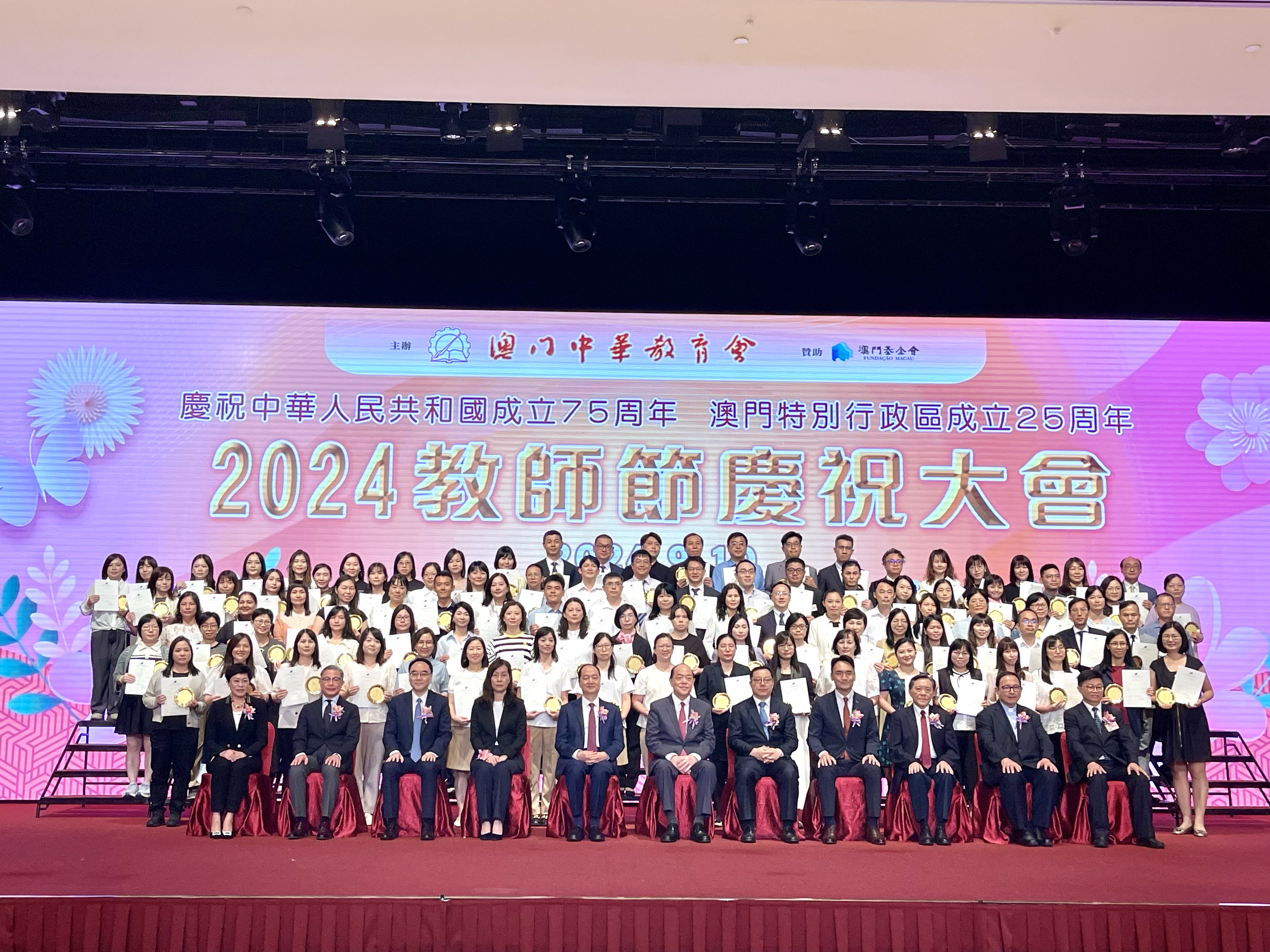 同場還嘉許在澳門專職從事教育工作達二十年的100名教育工作者,感謝他們長期以來堅守崗位,以赤誠之心、奉獻之心、仁愛之心投身教育事業,為莘莘學子貢獻出青春和汗水。
