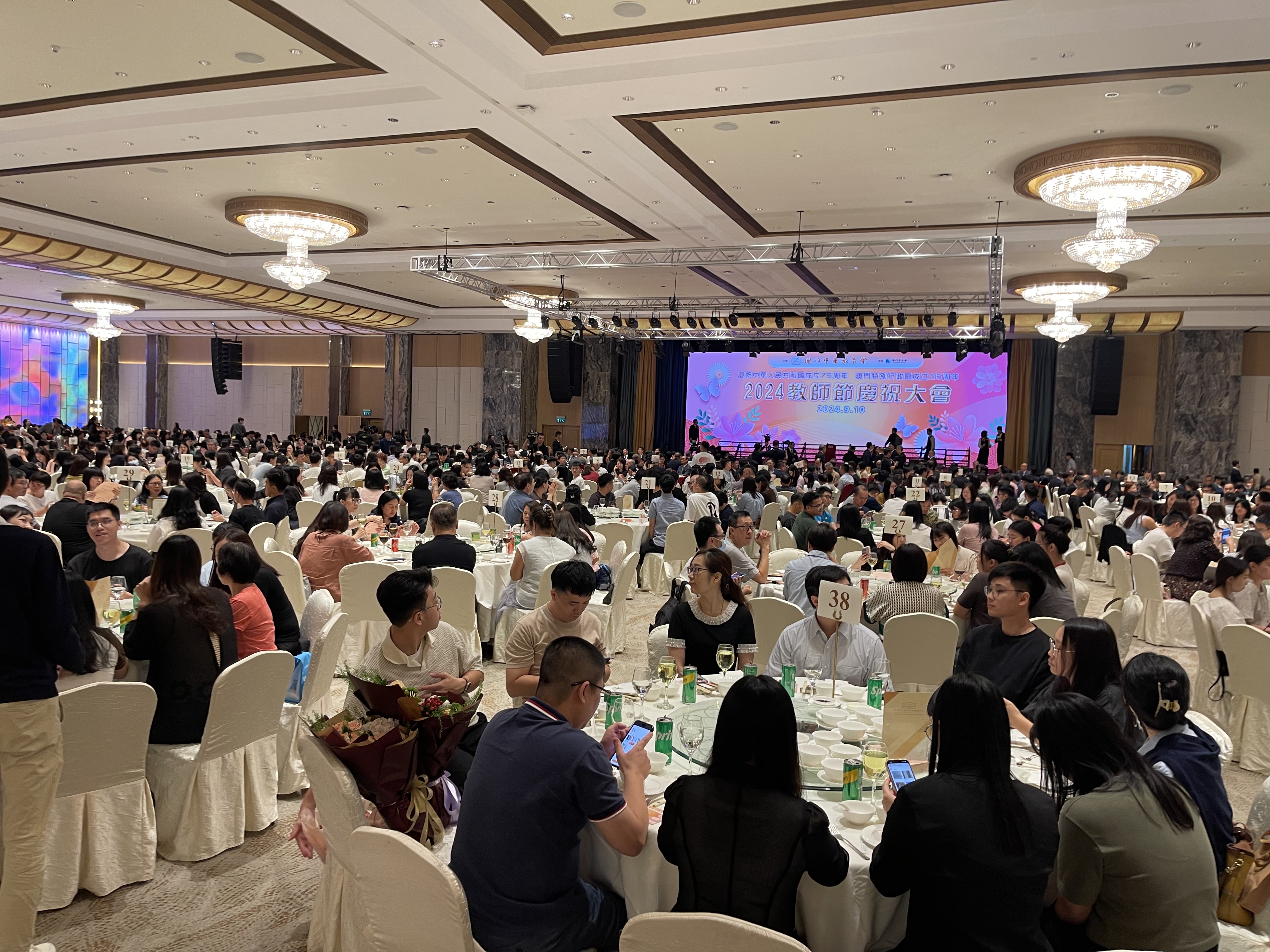 【即時新聞】澳門中華教育會今晚在漁人碼頭會議展覽中心舉辦2024年教師節慶祝大會,逾兩千名教育工作者歡聚一堂慶祝教師節,藉此交流教學心得,增進友誼,促進合作。行政長官賀一誠,中聯辦主任鄭新聰,外交公署署理特派員孫向陽,社會文化司司長歐陽瑜等嘉賓出席。