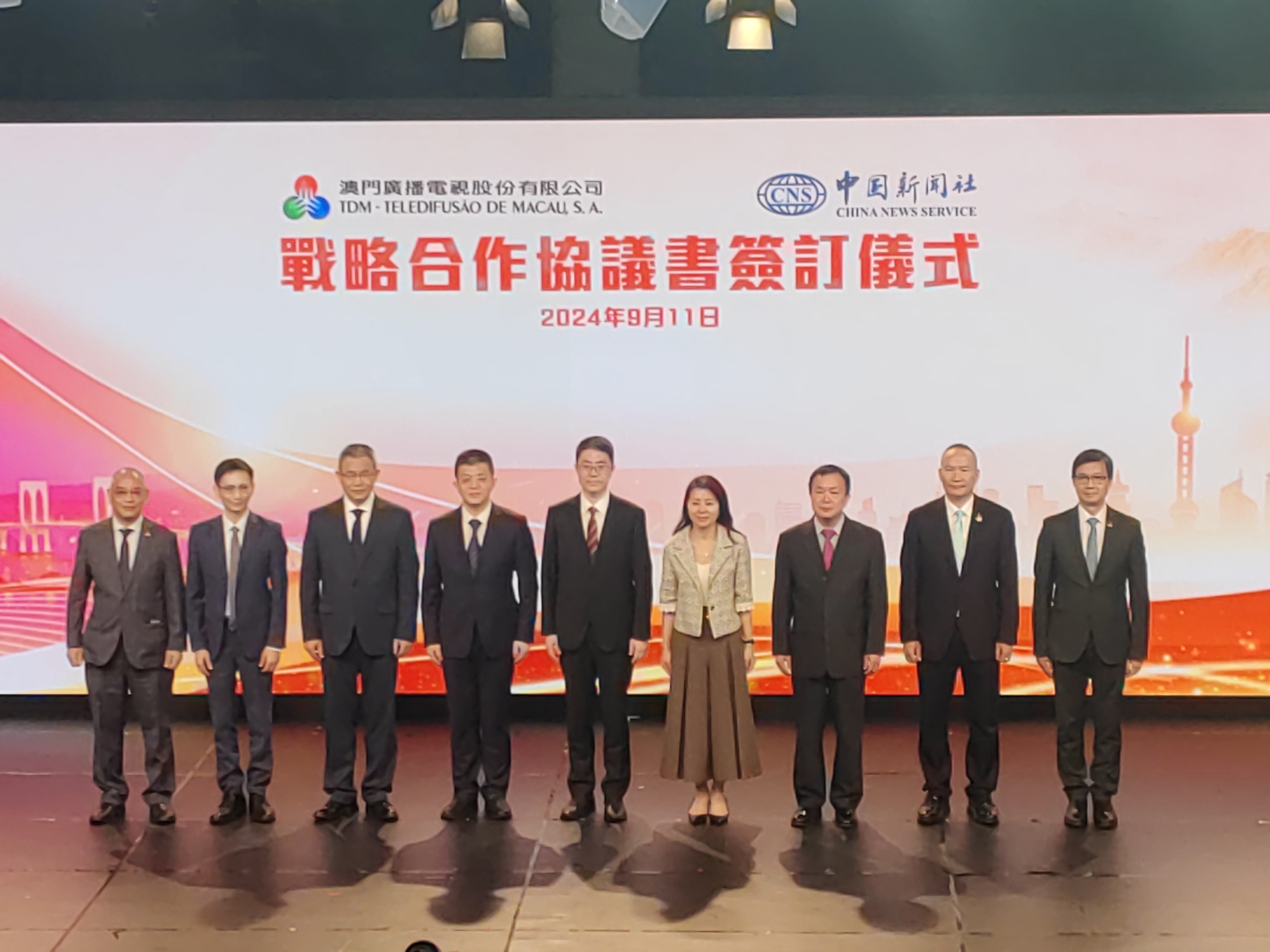 澳廣視執行委員會委員袁泳貴與中國新聞社視頻部主任齊彬分別代表雙方簽署協議,中聯辦宣傳文化部傳媒處處長董文浩,外交公署新聞和公共外交部主任高原,國家廣播電視總局駐澳門記者站站長瞿家茂,澳廣視董事會董事何凱玲、澳門特區政府新聞局新聞廳廳長陳裕康,澳廣視執行委員會委員黃偉鴻、鄭光普,以及駐澳傳媒和本地傳媒領導等共同見證。