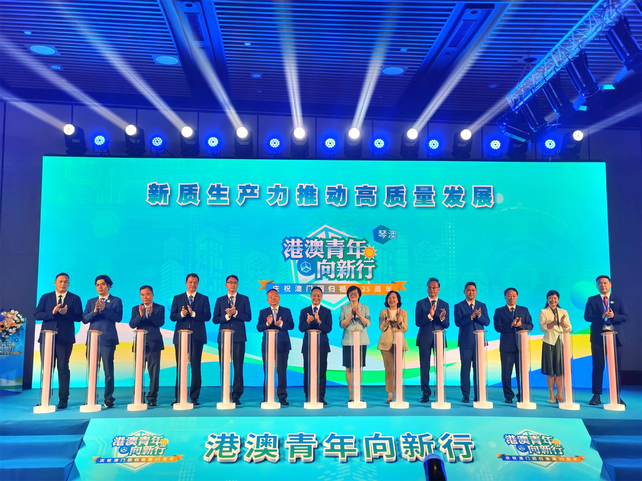 【即時新聞】由廣東省政府港澳事務辦公室、橫琴粵澳深度合作區執委會、香港民政及青年事務局、澳門教育及青年發展局共同舉辦的港澳青年“向新行”啟動儀式暨慶祝澳門回歸祖國 25 周年活動今日在橫琴舉辦。活動圍繞“新質生產力推動高質量發展”主題,促進港澳青年領會党的二十屆三中全會精神,支持促進港澳青年發展。