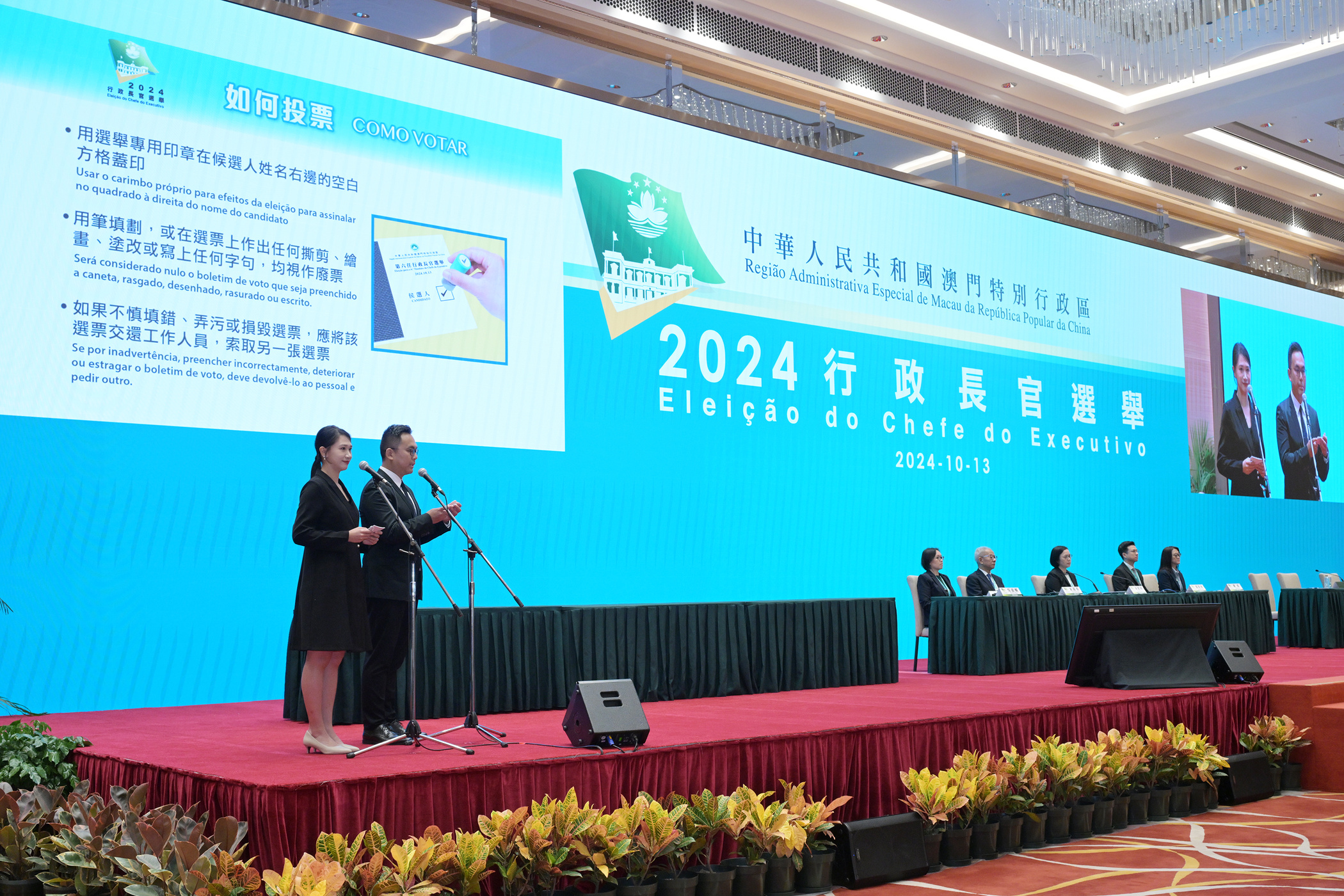 行政長官選舉的投票站設於中國與葡語國家商貿合作服務平台綜合體會議廳,整個選舉程序於上午10時開始,歷時約1小時35分。