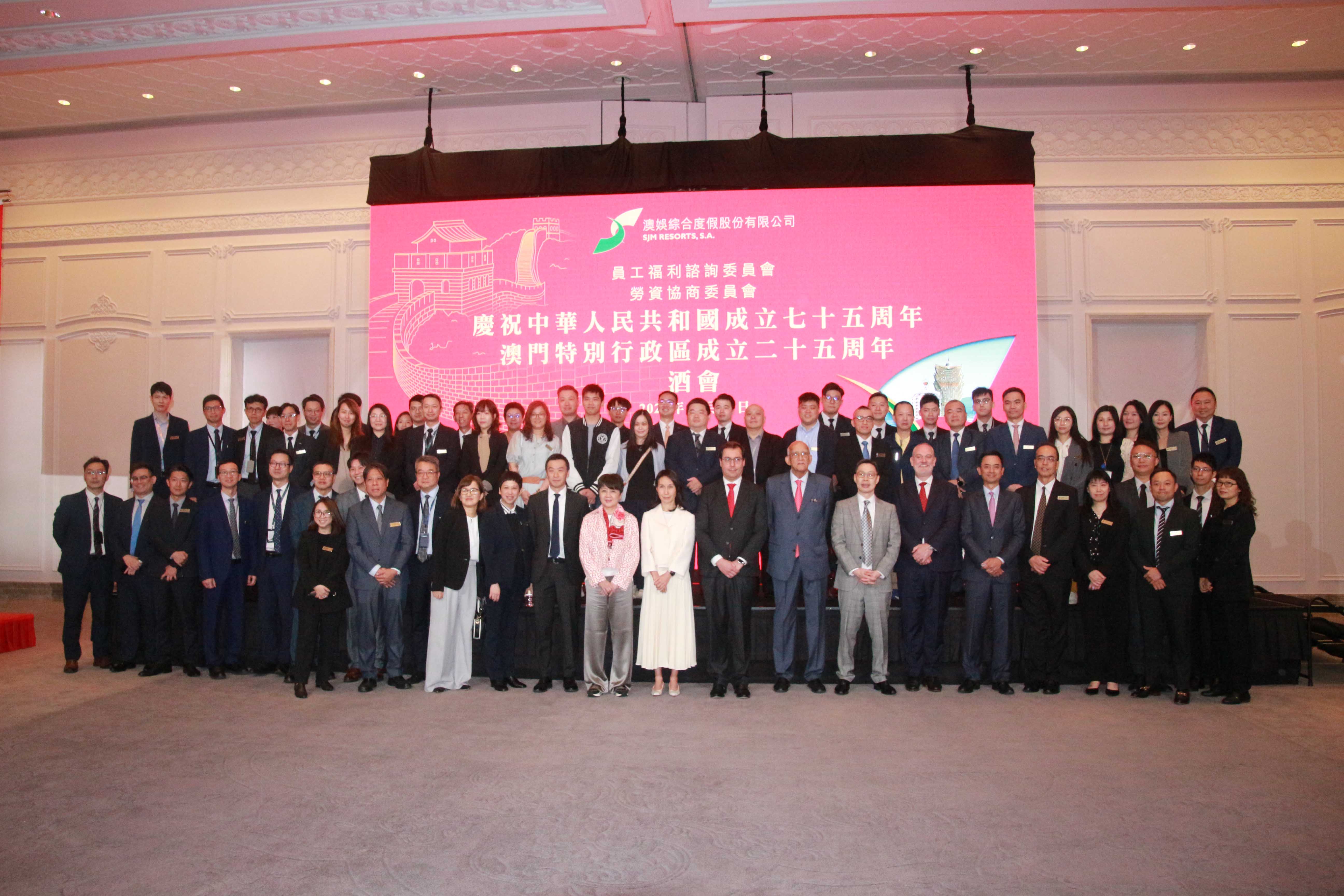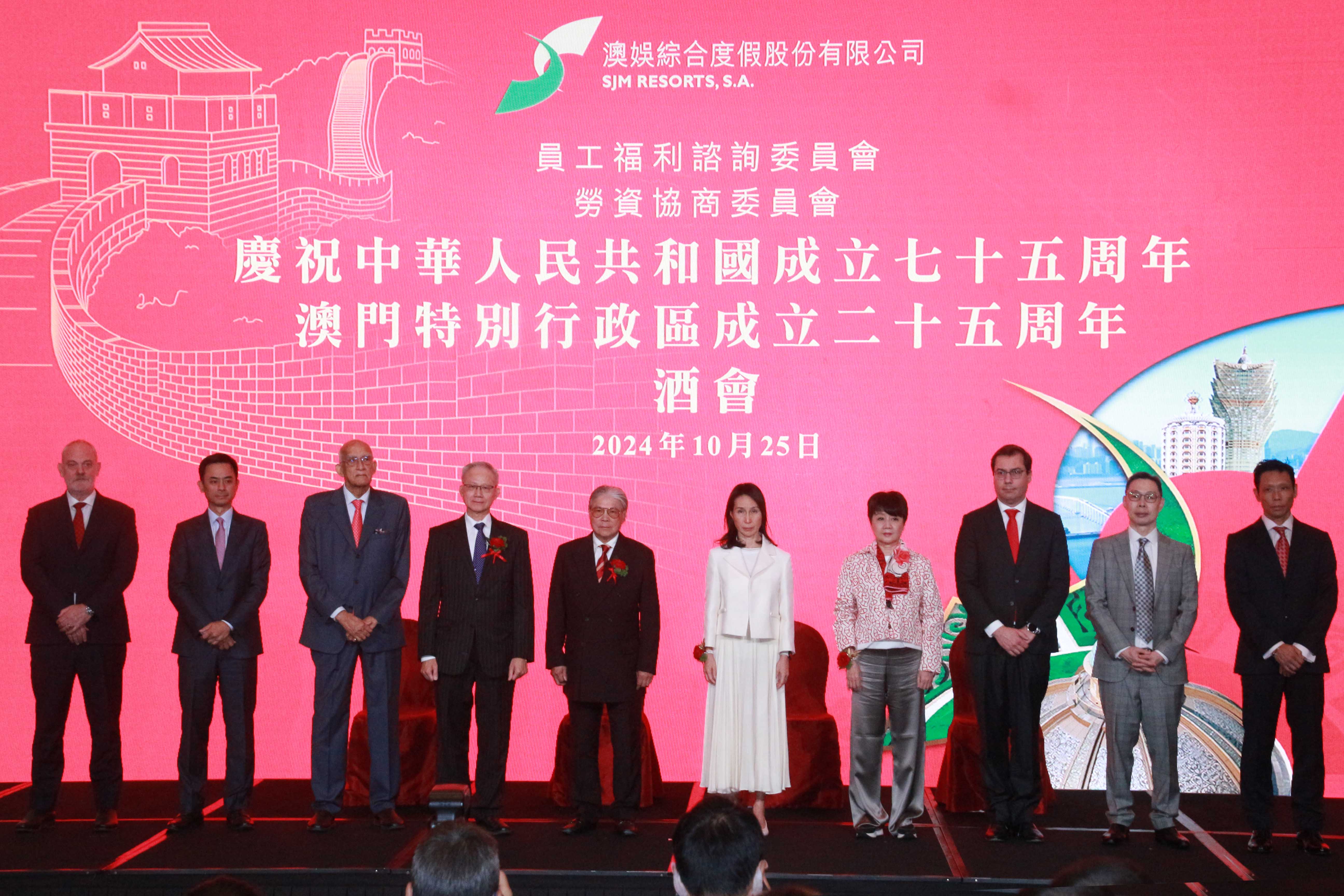 【即時新聞】澳娛綜合度假股份有限公司(「澳娛綜合」)聯同澳娛綜合員工福利諮詢委員會(「福諮會」)、澳娛綜合勞資協商委員會今日假上葡京四樓禮堂舉行兩場雙慶酒會,慶祝中華人民共和國成立七十五周年及澳門特別行政區成立二十五周年。
