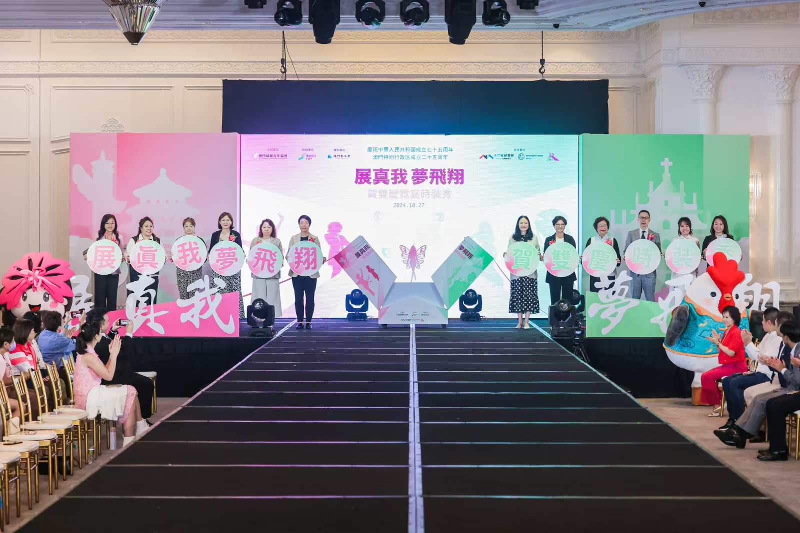 【即時新聞】為慶祝中華人民共和國建國75周年及澳門特別行政區成立25周年,澳門婦聯青年協會主辦的「展真我 夢飛翔」賀雙慶霓裳時裝秀下午假上葡京禮堂舉行,活動通過結合時尚展示與本澳女性追夢故事,傳遞在國家新時代發展、澳門「一國兩制」偉大實踐中,當代青年憑著奮鬥精神勇毅前行,在各業中發光發亮展現對國家和特區的熱愛,彰顯女性在社會發展中的貢獻時代風貌。
