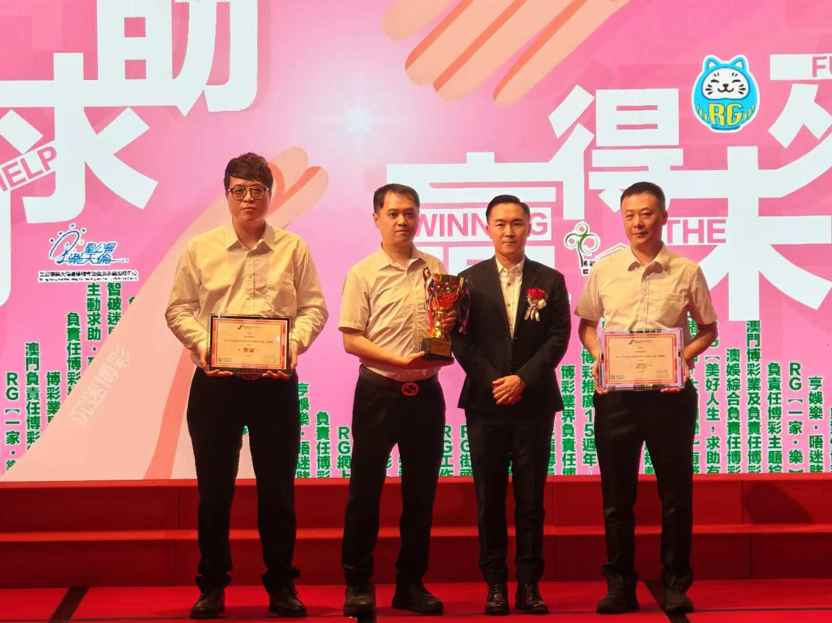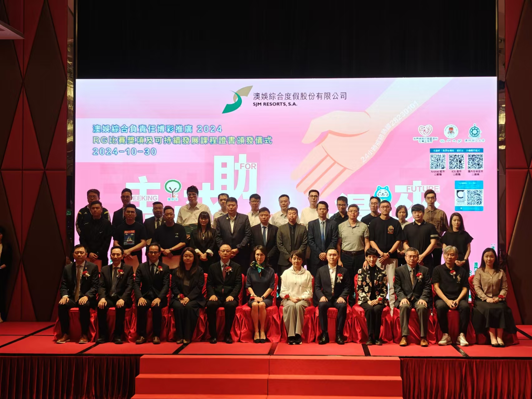 【即時新聞】澳娛綜合度假股份有限公司積極響應及配合特區政府負責任博彩推廣工作,包括本年度以「主動求助.贏得未來」為主題舉辦系列活動。今日下午,澳娛綜合於新葡京酒店宴會廳舉行「澳娛綜合負責任博彩推廣2024–RG比賽獎項」及「可持續發展課程證書頒發儀式」,以表彰本年度積極參與負責任博彩工作的員工,藉此鼓勵他們繼續努力,為澳門旅遊休閒業的可持續發展奠定良好基礎,共有35名員工完成培訓並取得證書。