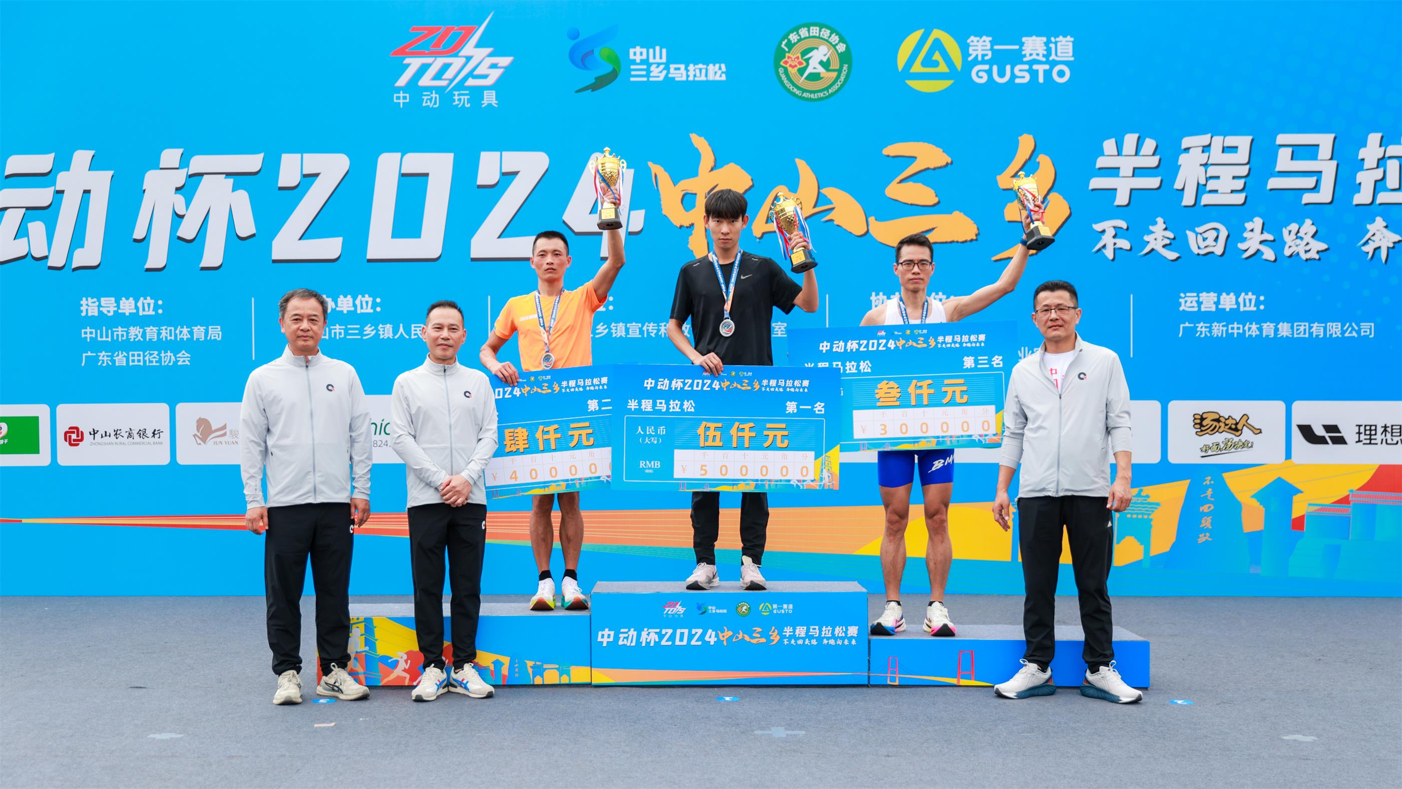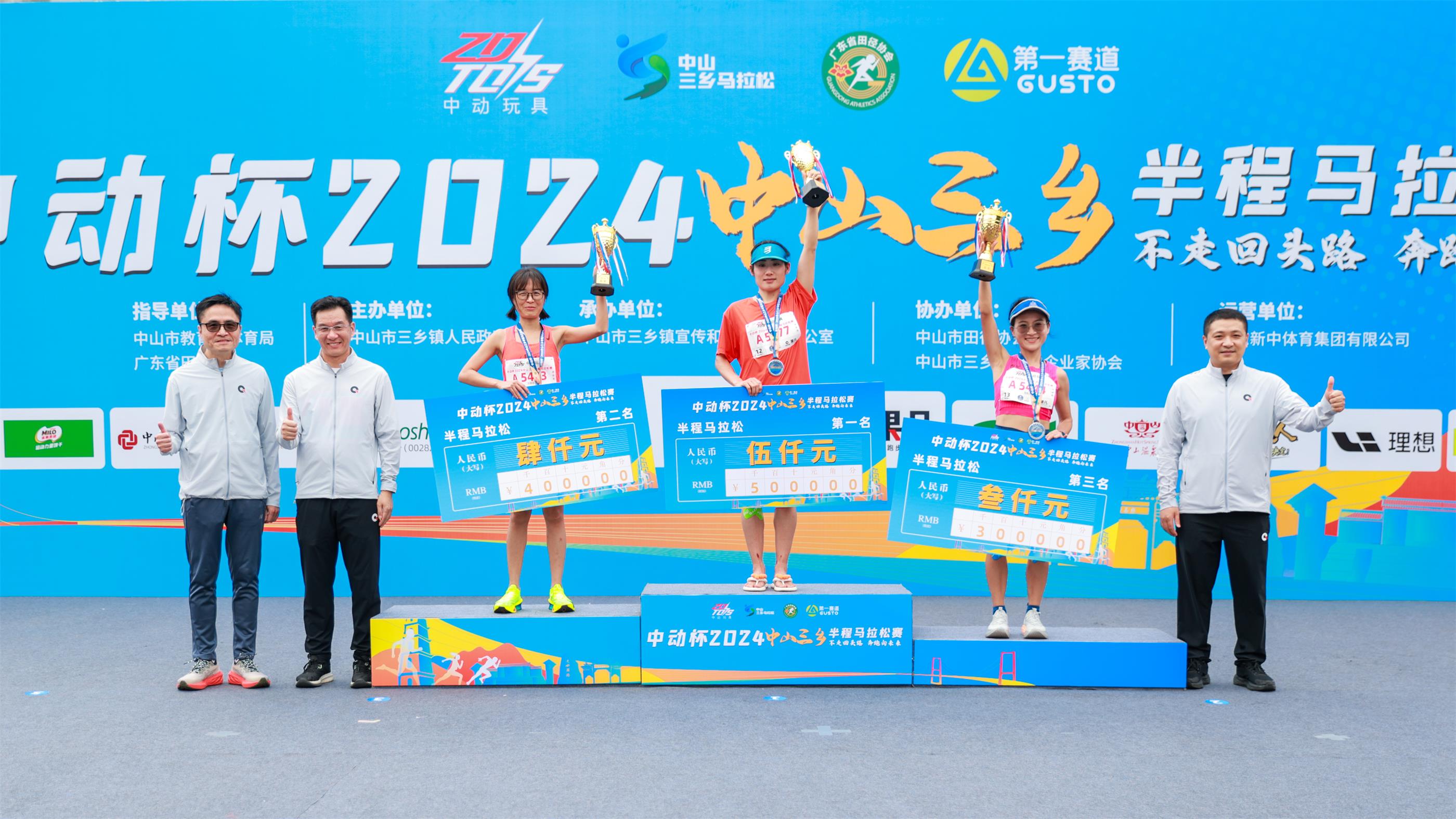 經過激烈的角逐,本屆半程馬拉松賽事男子組、女子組項目前三名出爐,男子組冠、亞、季軍為崔維康、李普謀、巴賢偉,女子組冠、亞、季為何芳、鄧夏昭、陳豔芬。其中,女子組第一名刷新三鄉半馬賽事紀錄!