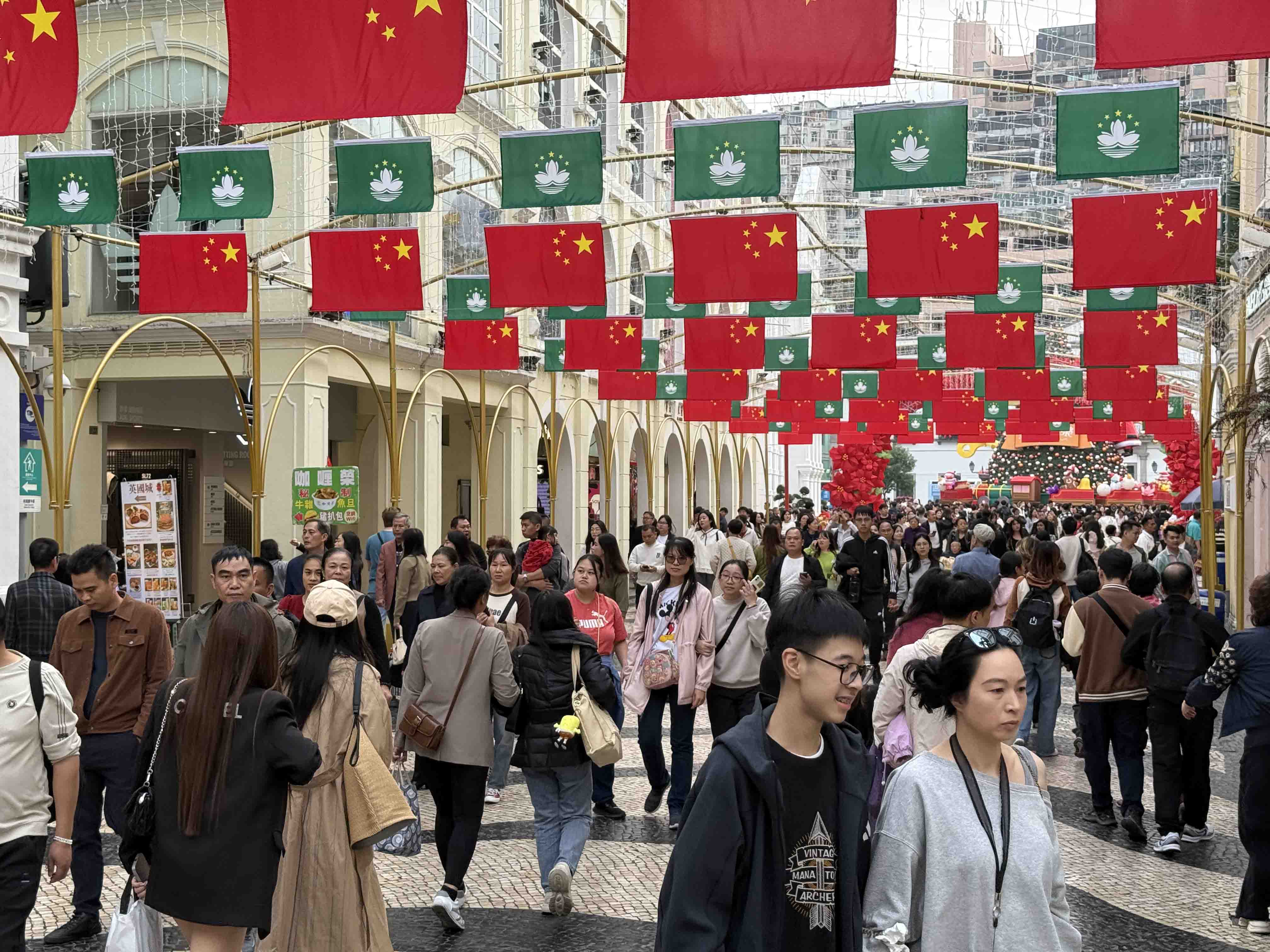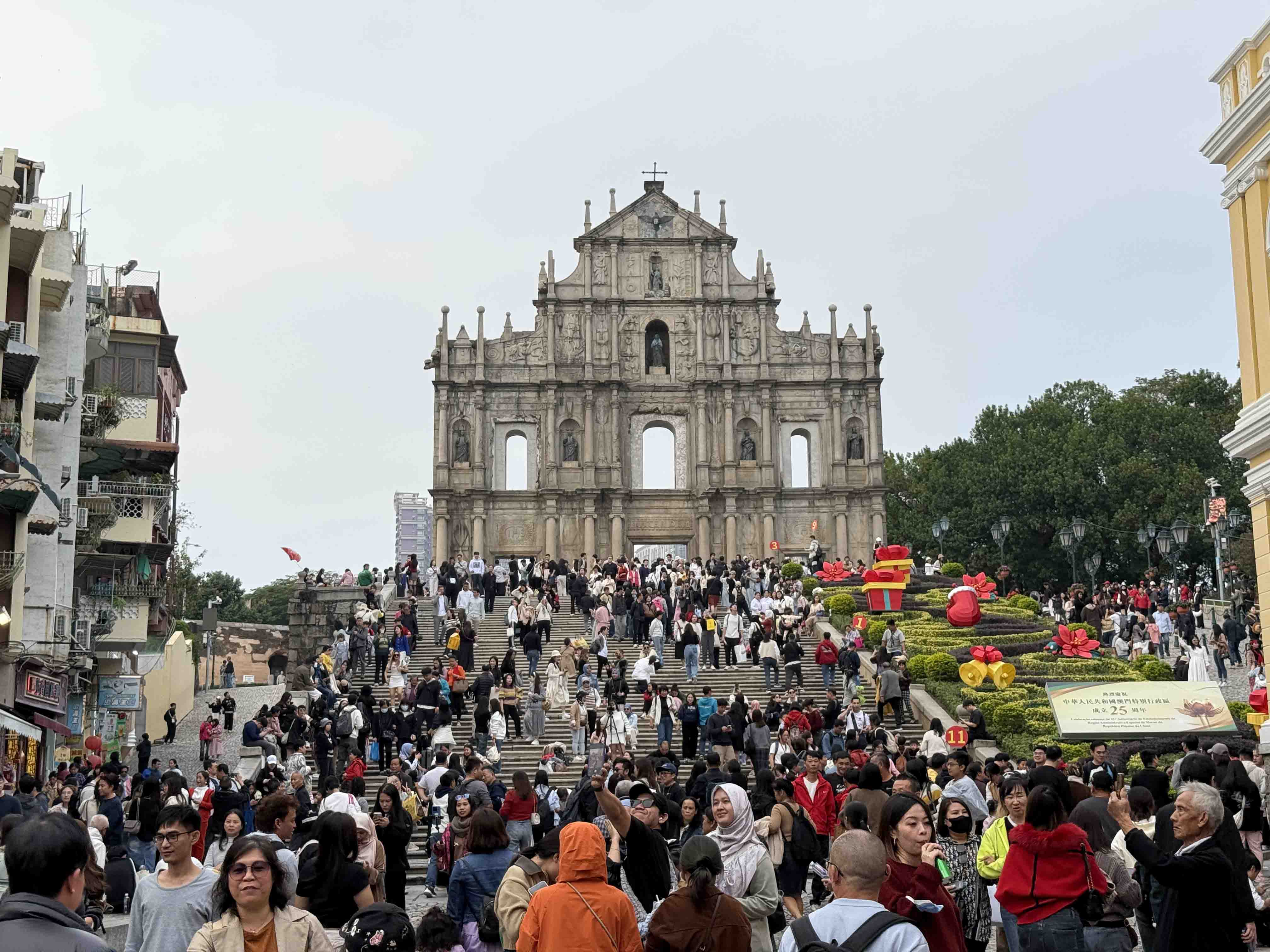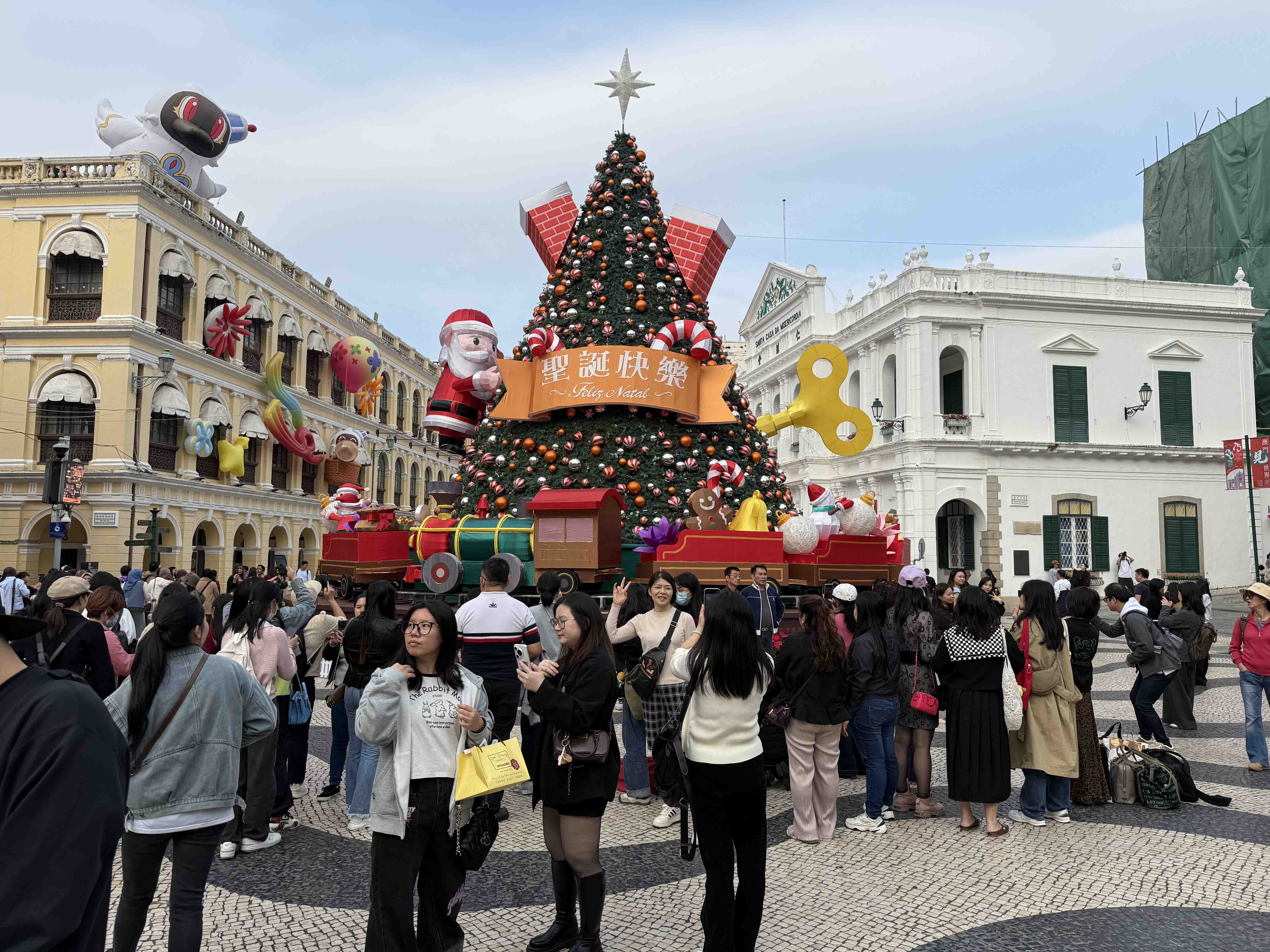 其中,議事亭前地、大三巴牌坊已鋪滿了各式各樣的聖誕裝飾,五光十色的燈飾與傳統建築相互輝映,為遊客帶來前所未有的視覺盛宴,吸引著眾多旅客的目光,成為人們拍照打卡的熱門地點。恰逢今年是澳門回歸25周年,中區燈飾亦包含“25”元素,與民共賀“雙慶”。