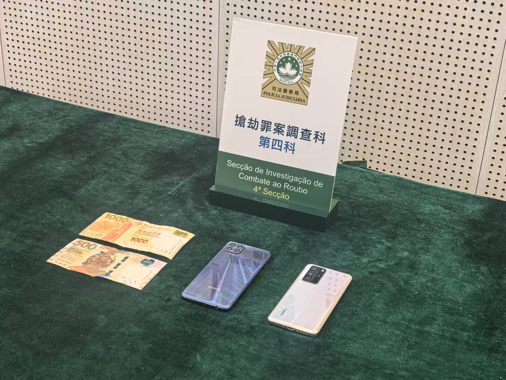 本月26日零晨時份司警報案及緊急頻道中心接到治安警察局通知,一名香港女子在新口岸區某娛樂場外被一名內地男士推撞並搶走1萬港元現金後逃離現場,司警接獲女事主報案後鎖定疑人身份並將其拘捕。