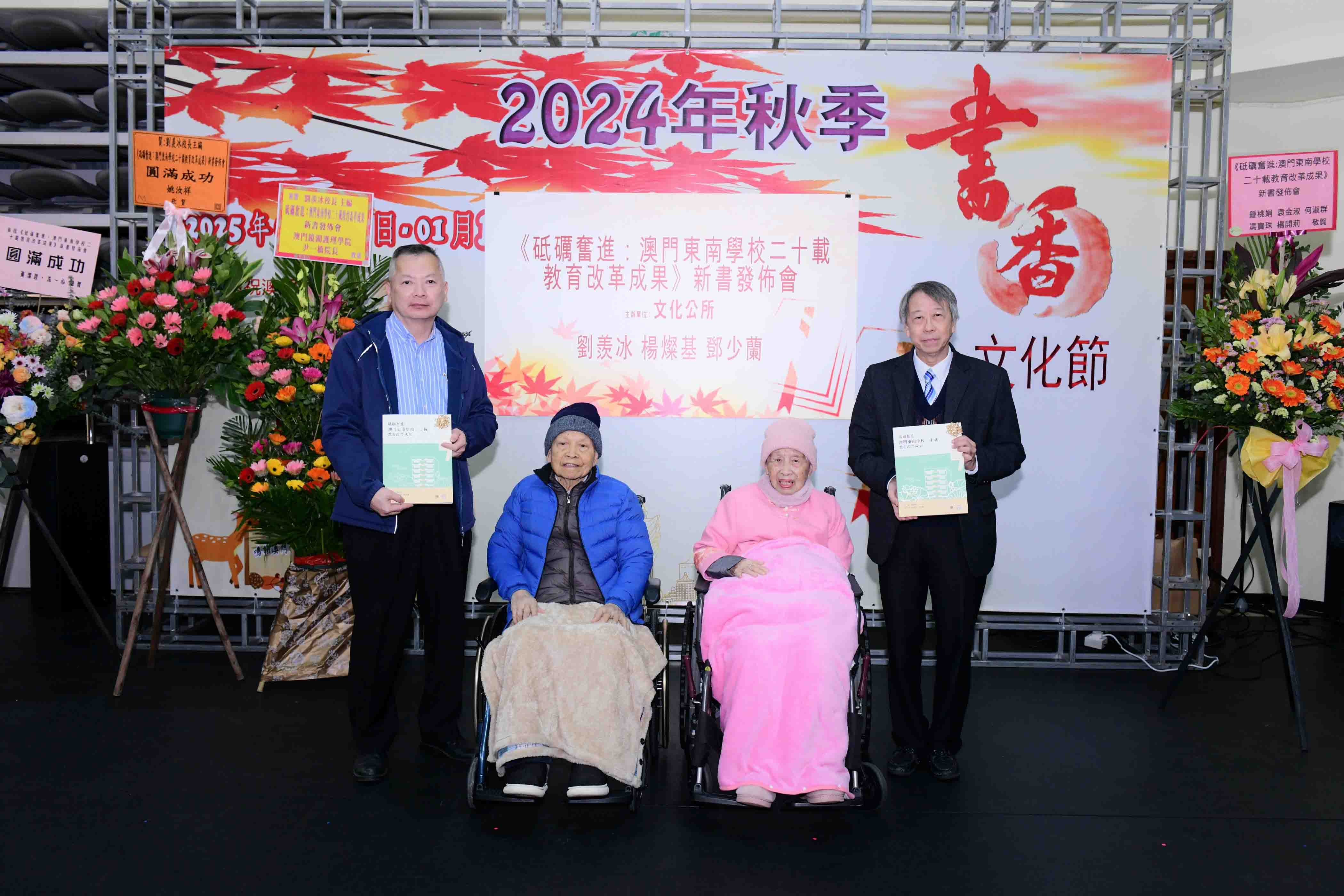 新書發佈會下午三時在澳門塔石體育館“2024秋季書香文化節”展場舉行,中聯辦宣文部副部長殷汝濤,中聯辦教青部副部長李勇先,澳門教青局課程發展及評核處處長鄭錫杰,中華教育會會長陳虹,東南學校校董會名譽主席陸波,立法會議員陳浩星,東南學校校董會主席陳雨潤,東南學校校長鄭洪光,嶺南中學校監區金蓉,澳門文教出版協會會長林發欽,東南學校校董會副主席、新書副主編楊燦基以及新書作者冼為鏗、劉羨冰伉儷主禮。陳雨潤致歡迎辭,介紹本書的內容和出版背景。