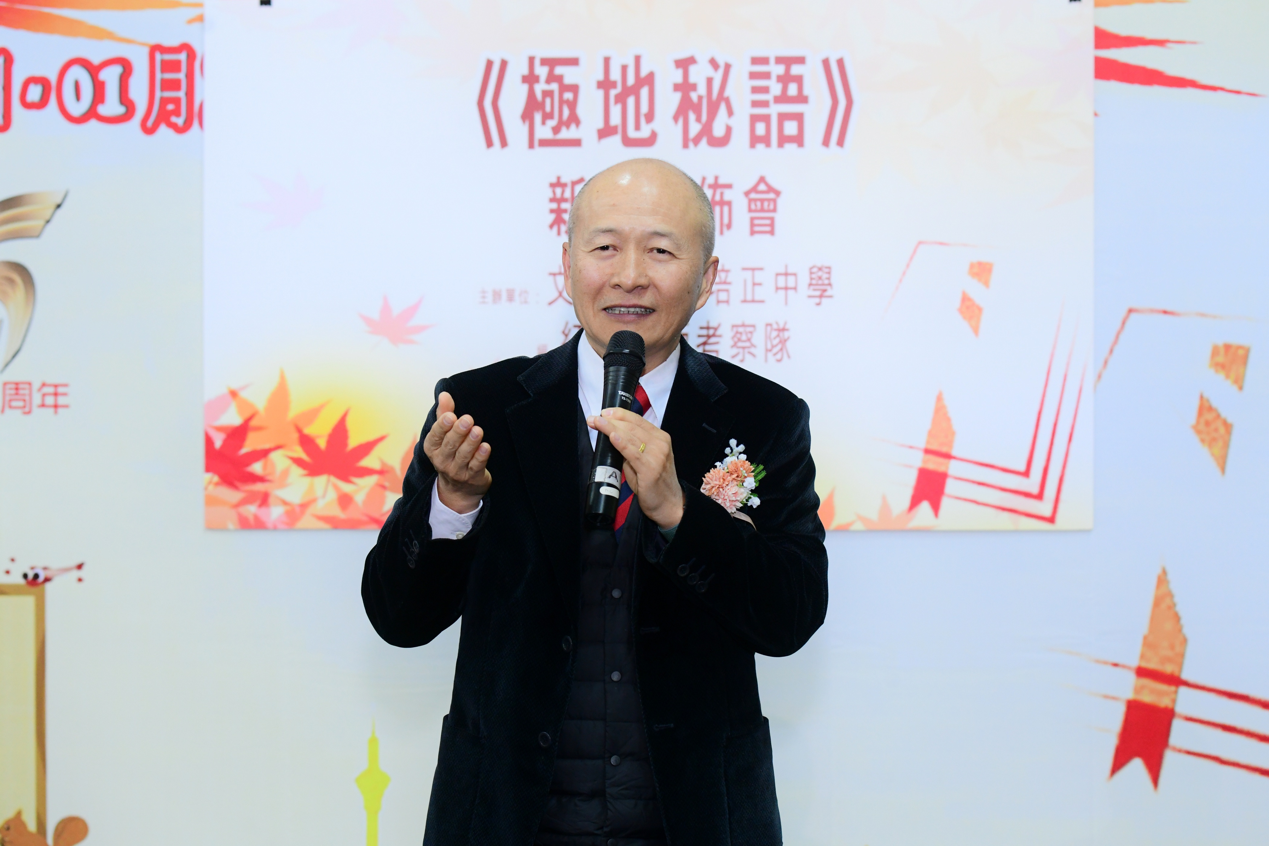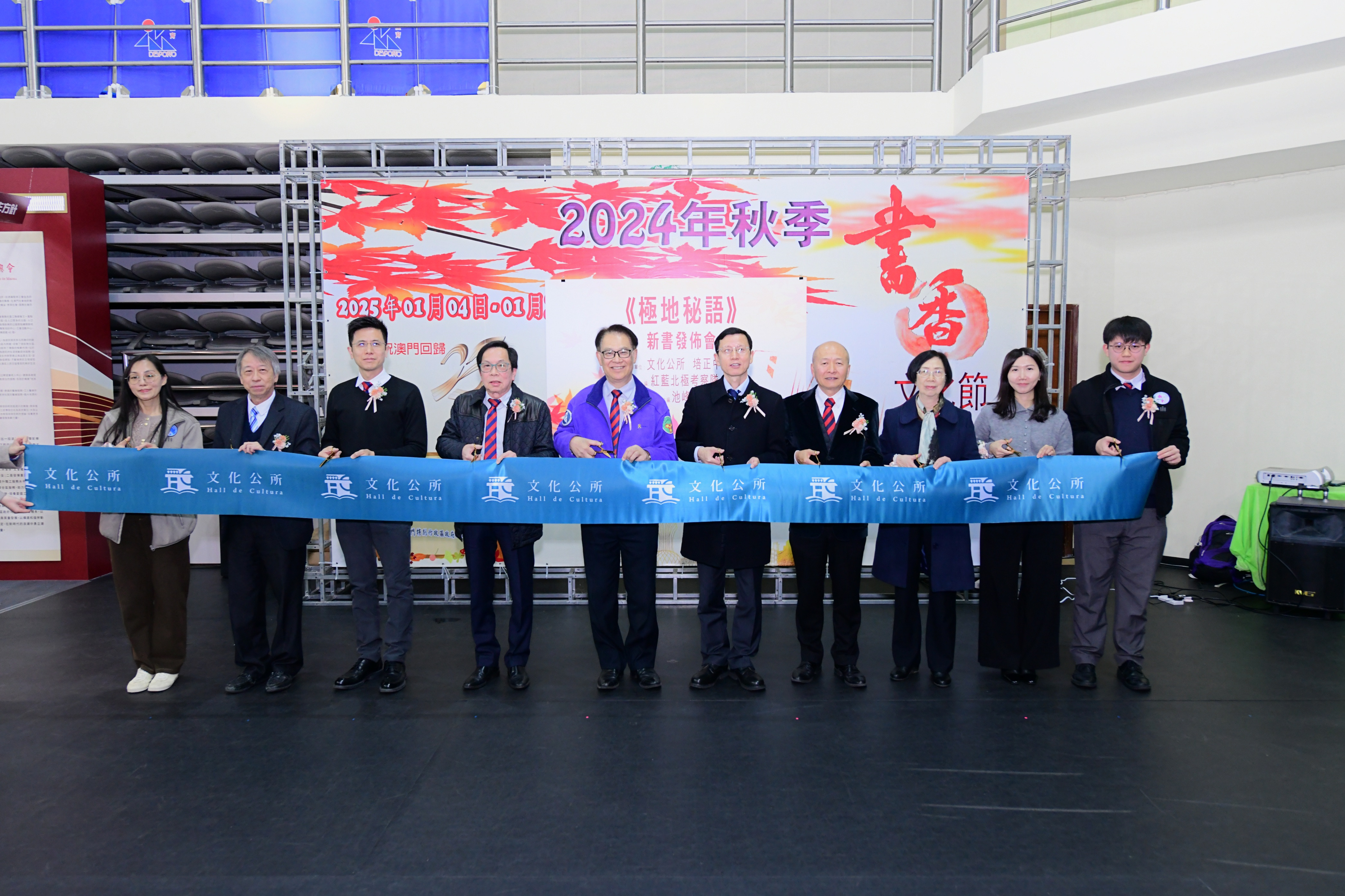 發佈會下午五時在塔石體育館“2024秋季書香文化節”展場舉行,中聯辦宣文部副部長殷汝濤,香港極地研究中心創辦人、澳門培正中學校董何建宗,澳門培正中學學校董、培正同學會主席黃漢堅,紅藍北極考察隊團長、澳門培正中學副校長郭敬文,澳門培正中學副校長陳敬濂,澳門筆會湯梅笑會長,澳門圖書館暨資訊管理協會理事長王國強,文化公所總經理趙香玲,新書編委會指導、澳門培正中學老師周慧心,新書主編池峰主禮。