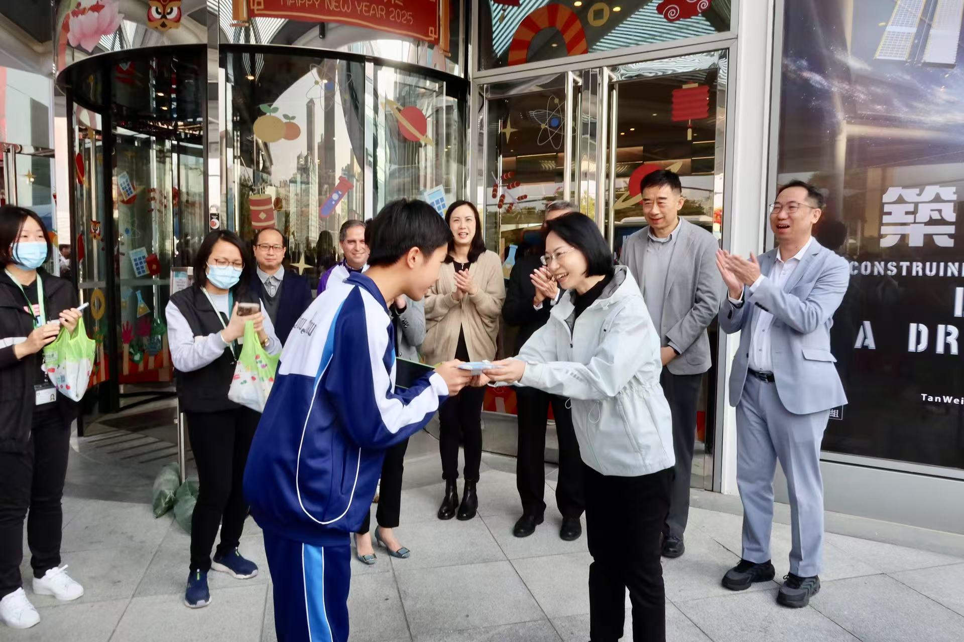 今日下午,社會文化司司長柯嵐在衛生局局長羅奕龍、社工局局長韓衛、疾控中心主任梁亦好等陪同下,分別前往多個站點視察。期間,一行在科學館站巧遇一班正在場內參與活動的學生,雙方隨即現場展開互動,科普預防流感等健康知識,羅奕龍、梁亦好作解答,交流氣氛踴躍。