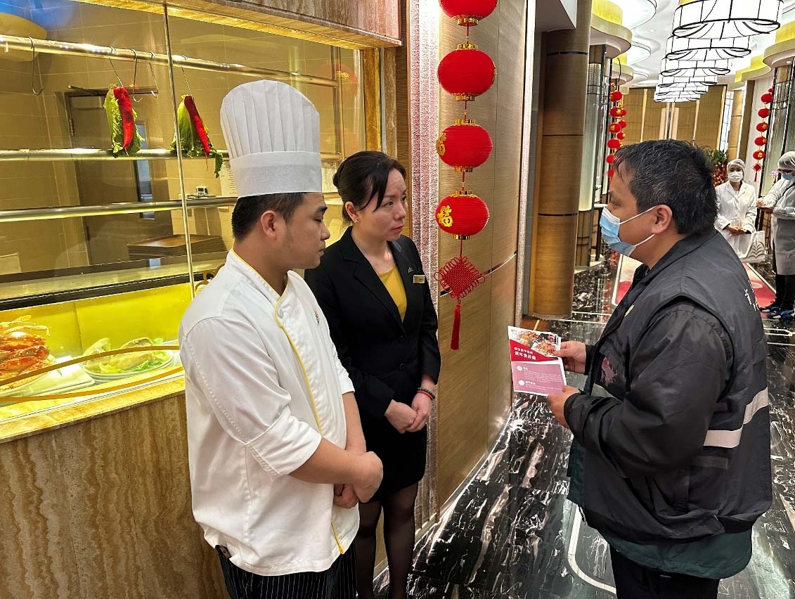 歲晚新春是餐飲消費高峰,市政署持續派員巡查及走訪各區餐廳、餅食手信店、外賣店及超市等。派發一系列食品安全衛生指引,要求商戶做好食品安全、個人及環境衛生管理,妥善貯存、處理食材及廚餘垃圾。巡查過程中,若發現相關場所存在食安隱患,將根據《食品安全法》採取預防及控制措施,包括勒令場所進行徹底清潔消毒、銷毀有問題食品,甚至暫停場所運作,直至符合安全要求。