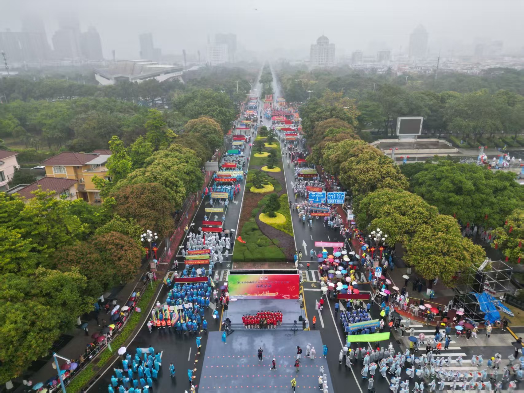 巡遊現場,“百千萬工程”方隊、黨員先鋒方隊、精神文明創建方隊、道德模範、身邊好人方隊、投資中山方隊、鄉村振興方隊等特色方隊,以及小欖棒壘球方隊、沙溪村BA籃球方隊等具有中山特色的方隊紛紛亮相。穿插在各方隊之間的西區醉龍、古鎮六坊雲龍、南朗崖口飄色、東區起灣金龍等20多支非遺表演隊伍也輪番表演,盡情展現嶺南文化、非遺文化、僑鄉文化特色,展示“百千萬工程”成果,讓廣大海內外鄉親感受家鄉發展成果、深厚的文化底蘊和向上向善的精神風貌。