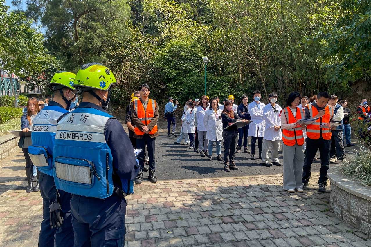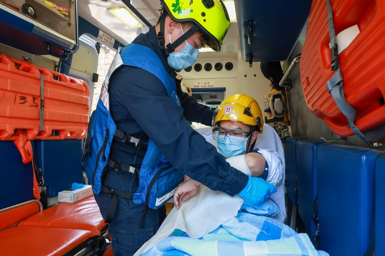 消防局接報後,立即派遣9架緊急車輛及39名隊員趕赴現場,按照既定的救援預案進行滅火、以及開展疏散搜救行動,並對傷者進行初步護理後模擬送院治理。