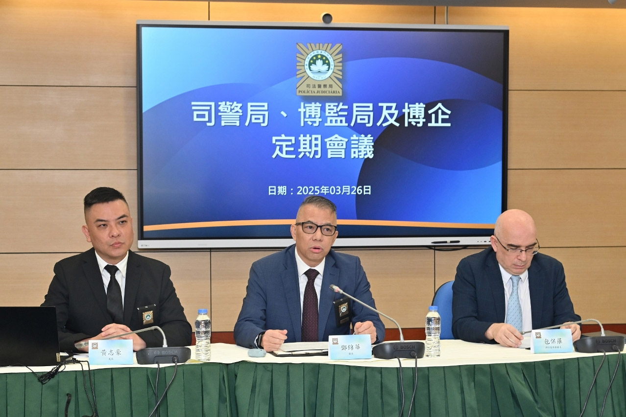司警局與博監局及六間博企保持緊密溝通,持續打擊博彩犯罪,並透過定期會議檢討及完善合作機制,共同維護娛樂場治安環境與澳門旅遊形象。