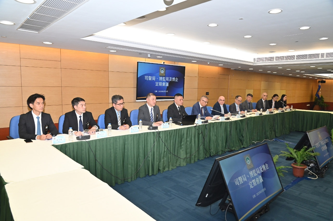 會議於3月26日在司警局總部大樓舉行。司警局博彩及經濟罪案調查廳鄧錦華廳長、博彩罪案調查處黃志豪處長,博監局包保羅廳長、尤富處長,以及六間博企保安高層代表出席。