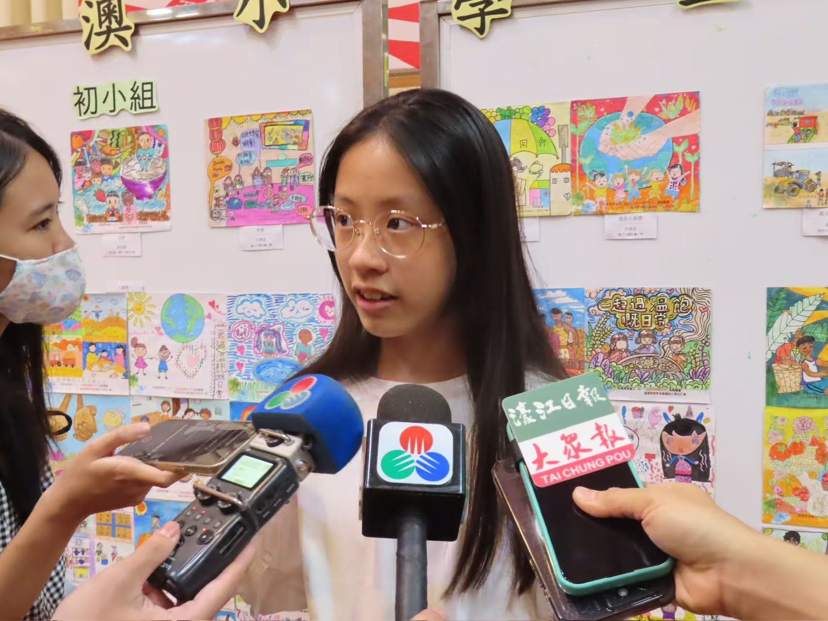 獲繪畫比賽高小組冠軍的勞校中學附屬小學學生任雅喬介紹,作品以電視機為構圖,中間斜格處畫有綠色的樹和草,與電視中缺糧地區形成對比,藉此呼籲人們幫助貧困人群改善生活環境。她認為,通過比賽更深刻認識到貧困問題,未來會更努力幫扶貧苦,呼籲他人一起參與,如捐款、作畫傳遞貧困地區的艱辛,讓人們珍惜現有生活,反思自身貪心,學會珍惜家庭。獲初小組冠軍的教業中學(國際部)蔡芷澄稱,作品主題為「四季」,隱喻非洲貧困人群的處境,認為其當前如同「冬天」,渴望獲得衣物、食物和溫暖,希望以此喚起對貧困兒童的關注。