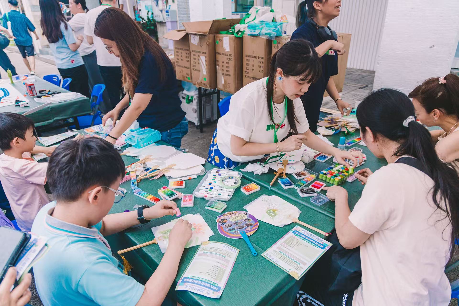 除了豐富精彩的舞台表演,活動現場還精心設置多元互動區域,包括工作坊、遊戲攤位以及互動打卡位,讓市民在欣賞表演的同時,還能親身感受荷花文化的魅力。其中,荷香拓印扇工作坊深受市民歡迎,在工作人員的指導下,市民親手製作出帶有荷花圖案的精美扇子,體驗傳統技藝的樂趣。透過荷花主題遊戲,市民可以深入瞭解其生長環境與特點。現場也設有故事劇場,將荷花知識巧妙融入精彩的繪本故事中,寓教於樂,生動有趣的演繹形式吸引眾多親子家庭積極參與,為現場增添溫馨歡樂的氣氛。