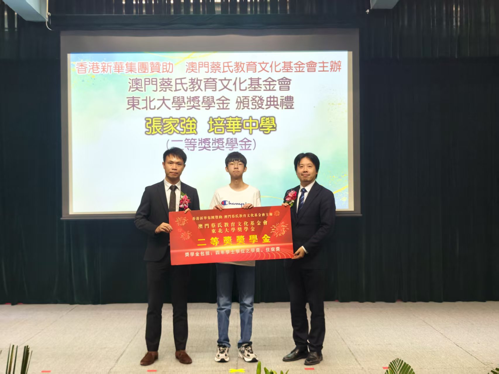【即時新聞】澳門蔡氏教育文化基金會下午舉辦「全澳中學優異生獎學金」及「澳門蔡氏教育文化基金會東北大學獎學金」頒發典禮,分別向53名中學優異生及4名升讀東北大學的學生頒發獎學金,鼓勵他們成為其他同學學習的榜樣,共同營造積極向上的學習氛圍,提高澳門整體教育質素。