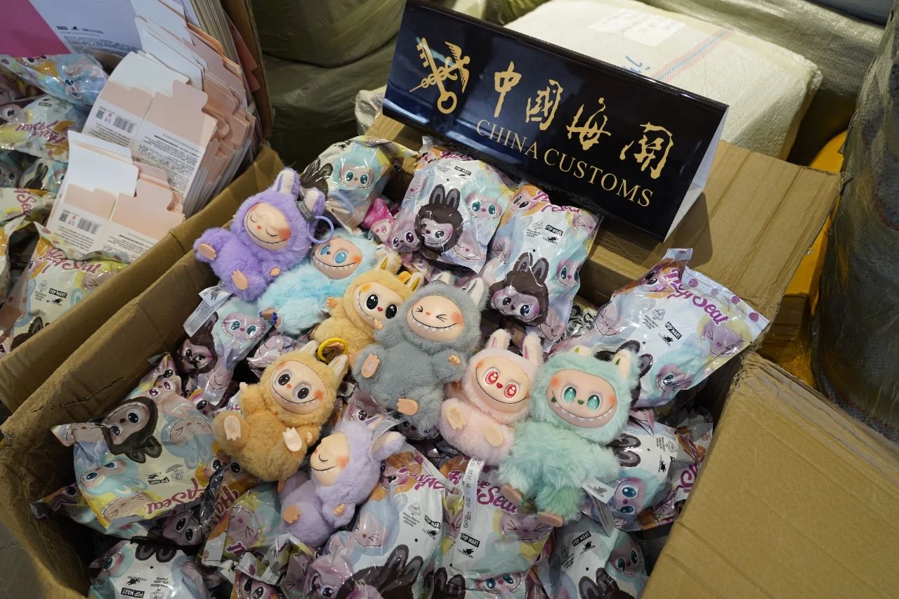 港珠澳大橋海關檢獲假冒泡泡瑪特公仔26260件