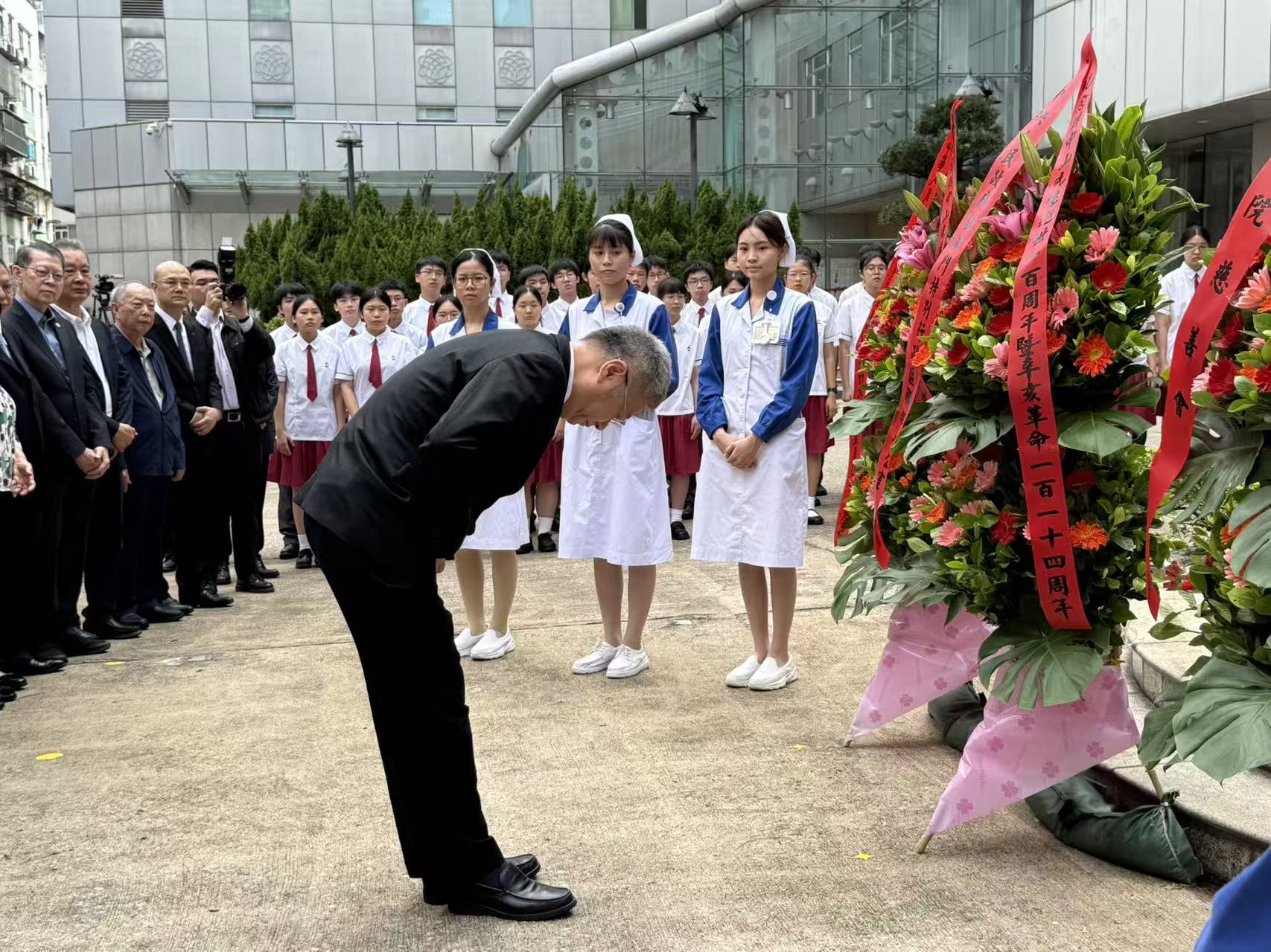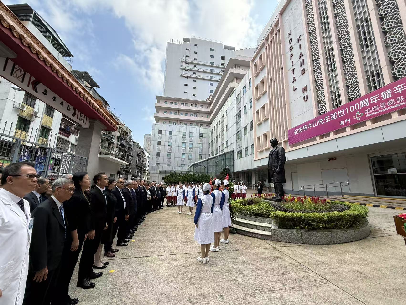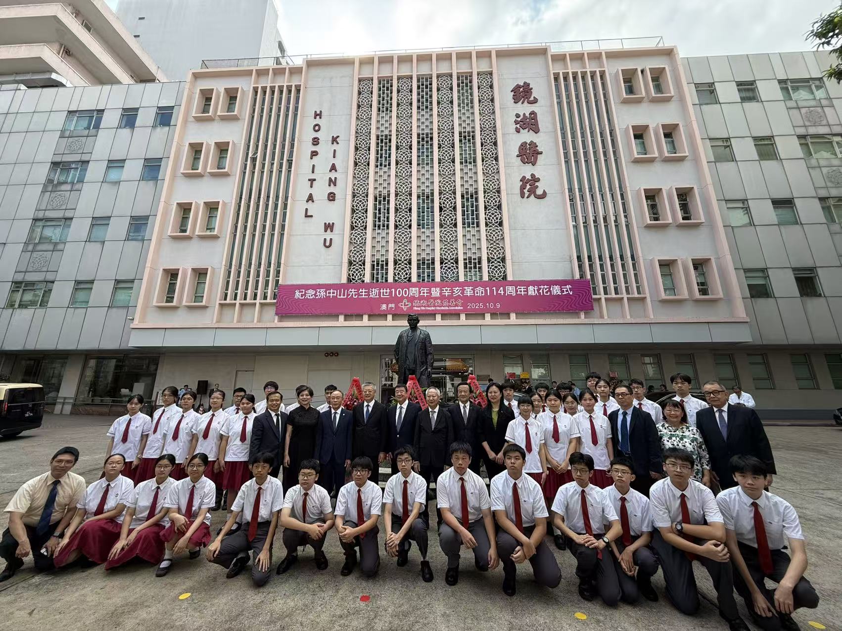 【即時新聞】鏡湖慈善會舉辦紀念孫中山逝世一百周年暨辛亥革命114周年活動,邀請中聯辦、外交公署、鏡湖慈善會、鏡湖醫院、鏡湖護理學院、鏡平學校及社團代表等嘉賓向孫中山先生銅像敬獻花籃。