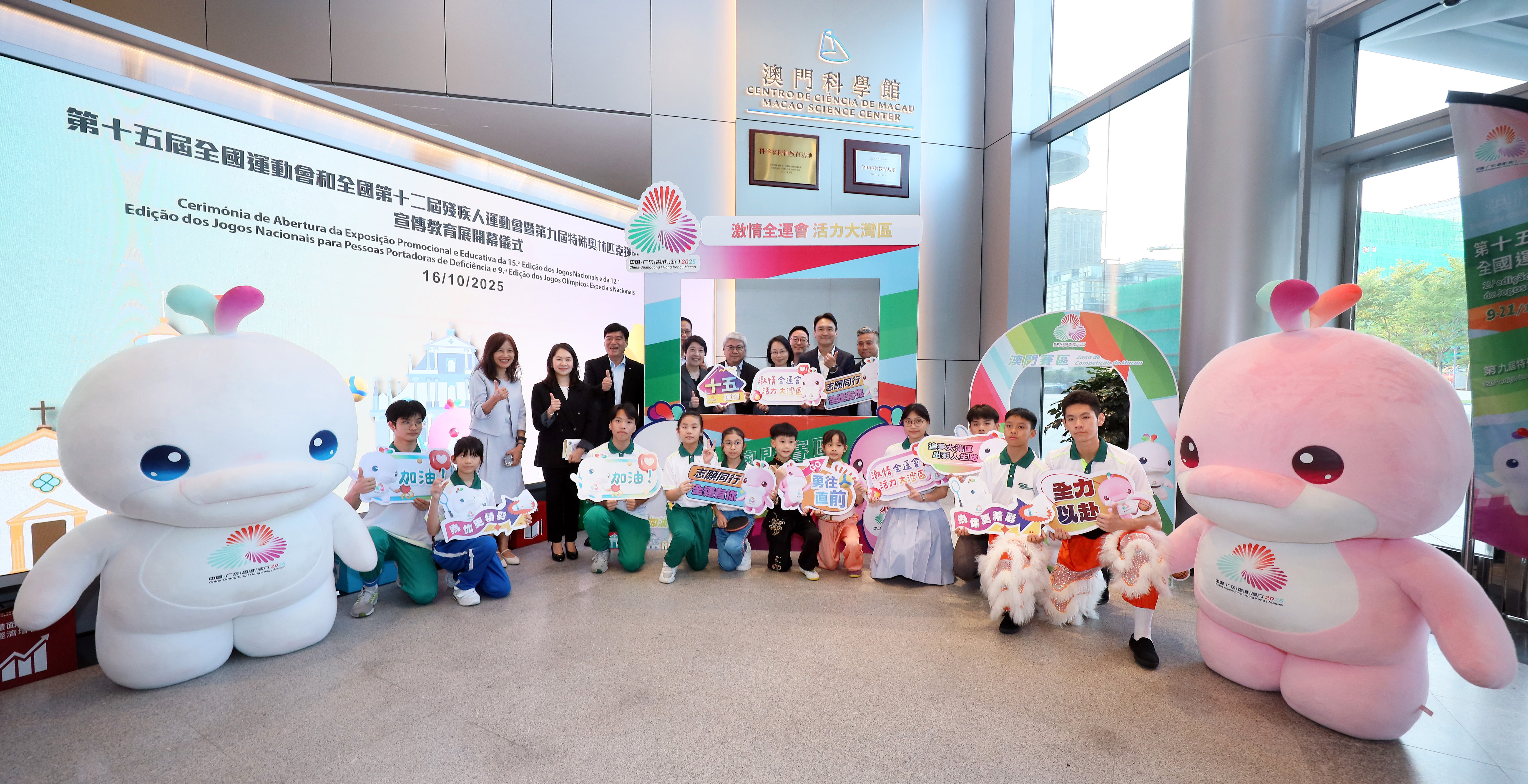 【即時新聞】第十五屆全國運動會和全國第十二屆殘疾人運動會暨第九屆特殊奧林匹克運動會(下稱“十五運會及殘特奧會”)將於本年11月及12月舉行。為宣揚“活力澳門”及“灣區同心 全運同行”的精神,由十五運會及殘特奧會澳門賽區組織委員會主辦,十五運會及殘特奧會澳門賽區籌備辦公室及教育及青年發展局承辦的“第十五屆全國運動會和全國第十二屆殘疾人運動會暨第九屆特殊奧林匹克運動會宣傳教育展”,於10月16日至12月15日在澳門科學館舉行,讓全澳社會各界包括師生及青年共同感受全國運動會的熱烈氛圍,共迎國家體育盛事。