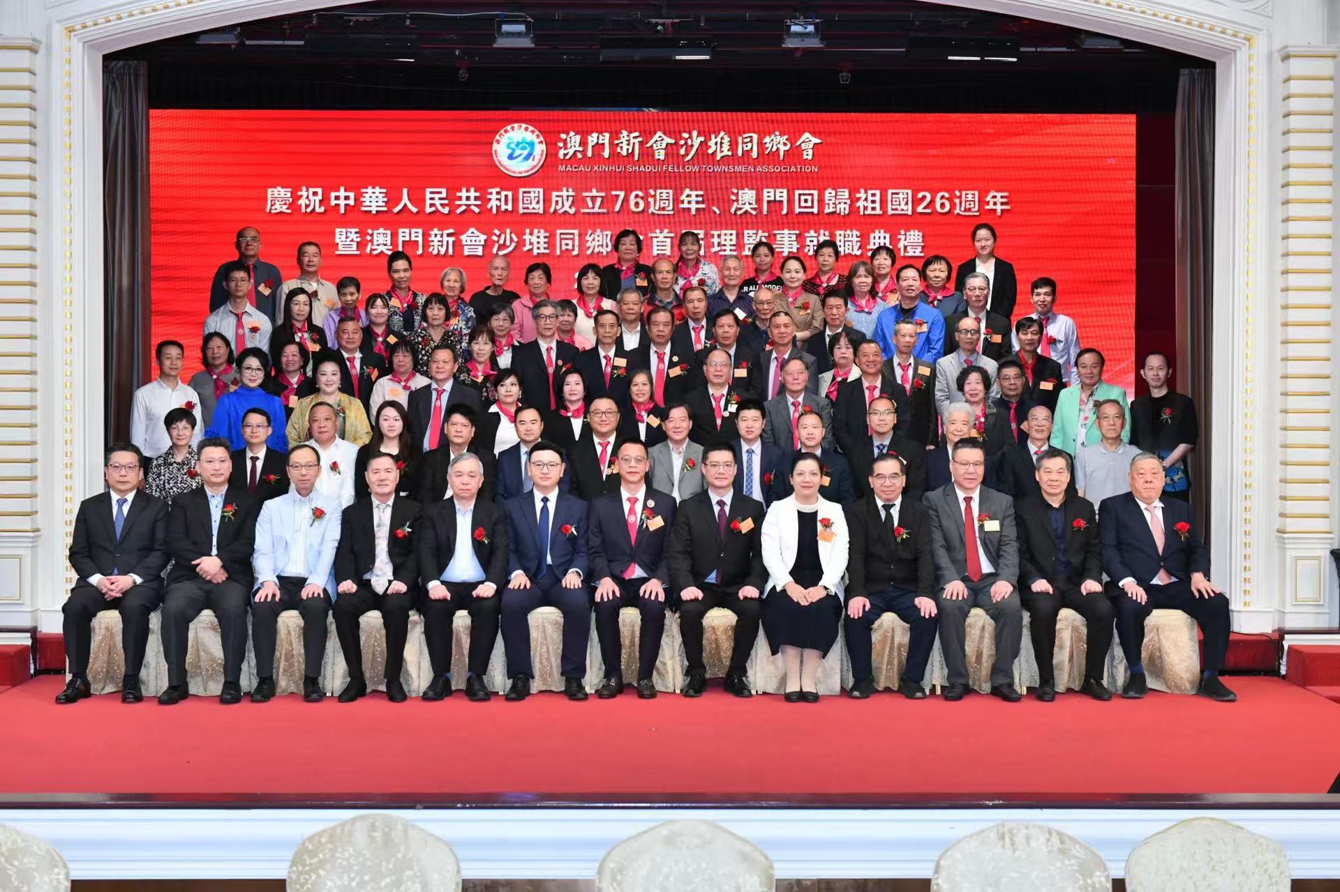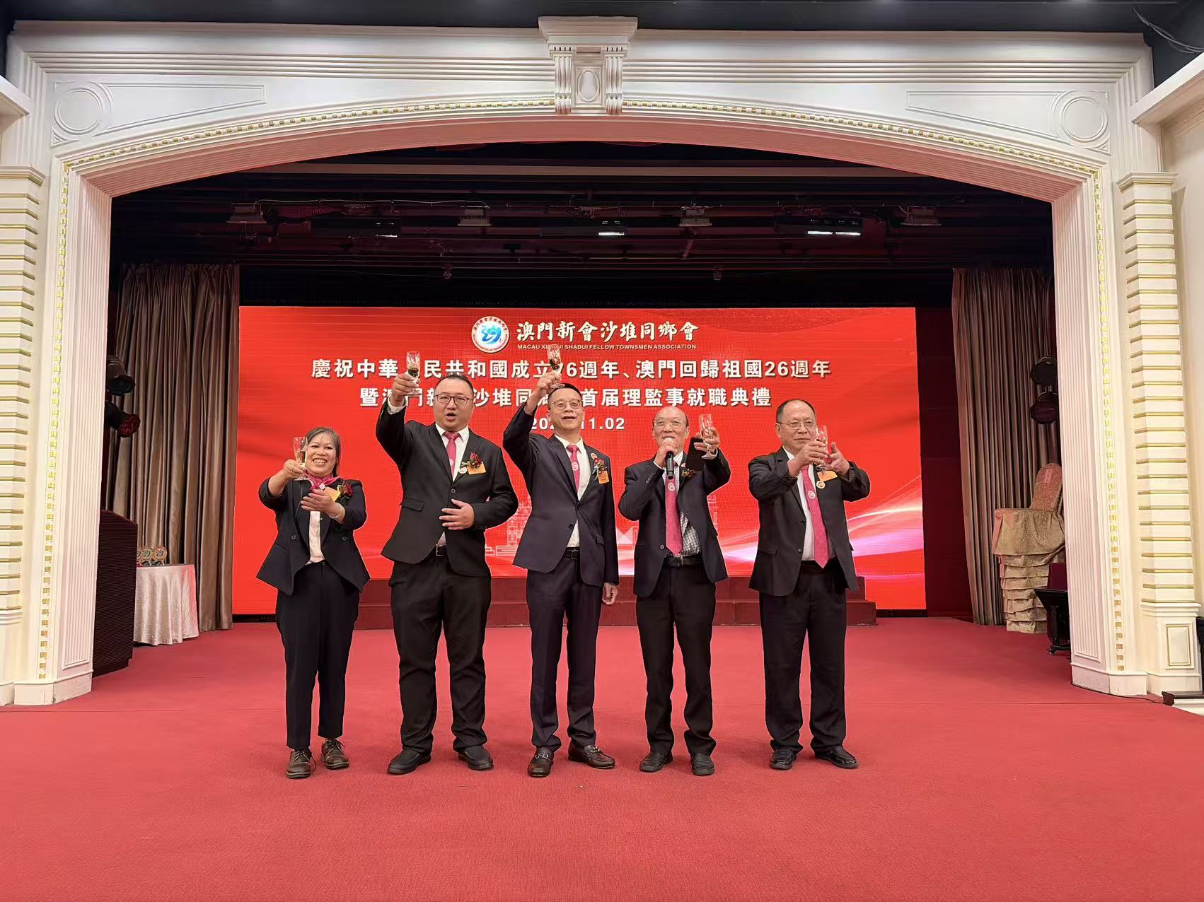 【即時新聞】澳門新會沙堆同鄉會晚上七時半假萬豪軒舉行慶祝中華人民共和國成立76週年、澳門回歸祖國26週年及首屆理監事就職典禮,江門市委統戰部副部長、市台港澳事務局局長李欣立率團到賀。會長林國傑表示,同鄉會將秉承「愛國、愛澳、愛鄉」的初心,堅定維護國家安全,全力支持行政長官和特區政府依法施政,全心全意為沙堆鄉里、澳門居民服務,接下來將圍繞擴大同鄉會隊伍、加強兩地合作、為年輕人搭橋鋪路三方面重點開展工作,致力搭建成為鄉族發展的堅實平台、連接澳門與家鄉兩地的堅實橋樑,以及培養青年的堅實後盾。