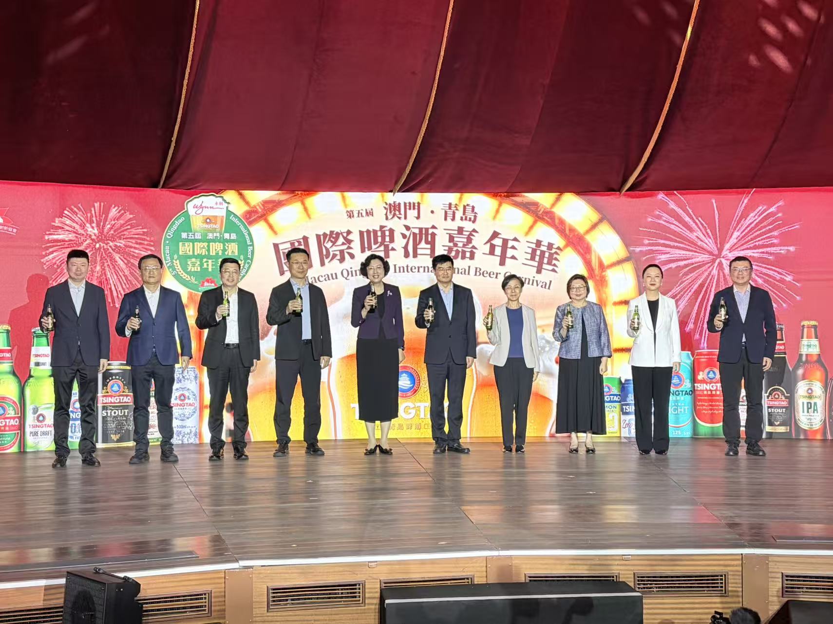 張惠致辭表示,青島與澳門以海相連、情誼相通,在國家發展大局中均有著特殊地位與獨特價值。近年來,青澳兩地互動頻繁,先後舉辦了活力澳門推廣周、青澳國際帆船拉力賽等交流活動,山東青島澳門周更是掀起熱潮,澳門商品深受青島市民喜愛。今年以來,青澳航線已運行125架次、往返旅客達1.5萬人次,再創新高。啤酒作為青島的城市名片,自青島啤酒進入澳門市場以來,已連續十多年成為澳門市場銷量最高的啤酒品牌,穩居行業領先地位,覆蓋網絡終端數已超1800家,鋪貨率超過95%。青島產業基礎雄厚、創新活力十足、開放特色突出,期望澳門同胞未來多到青島考察交流、投資興業。