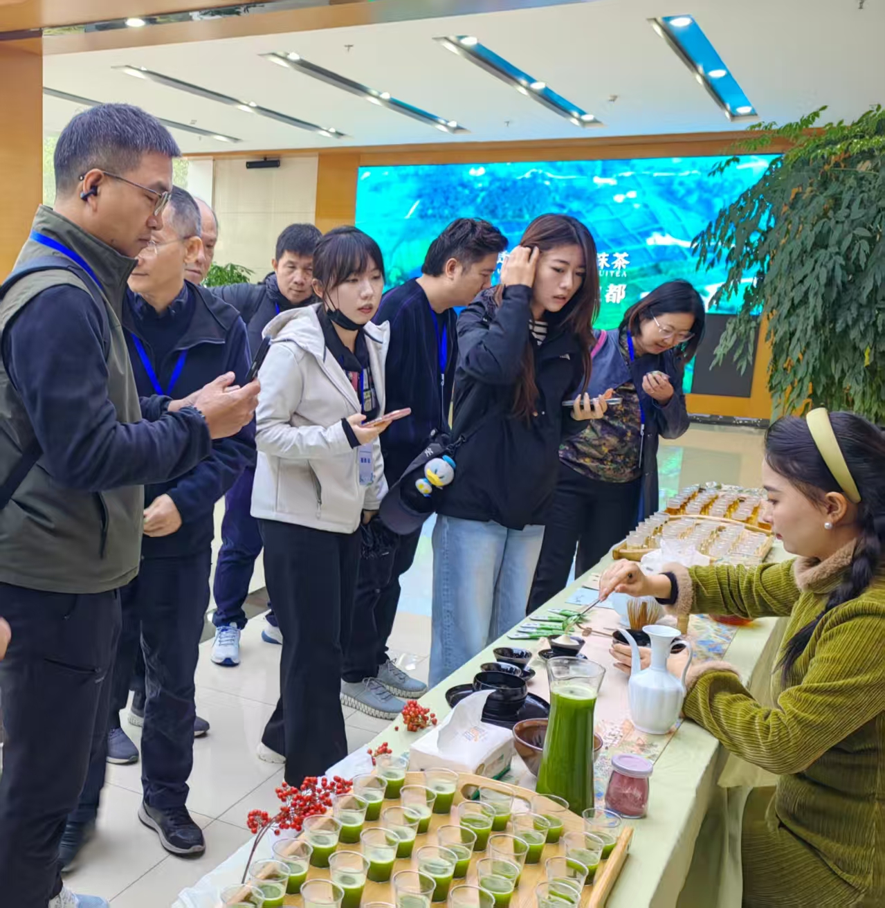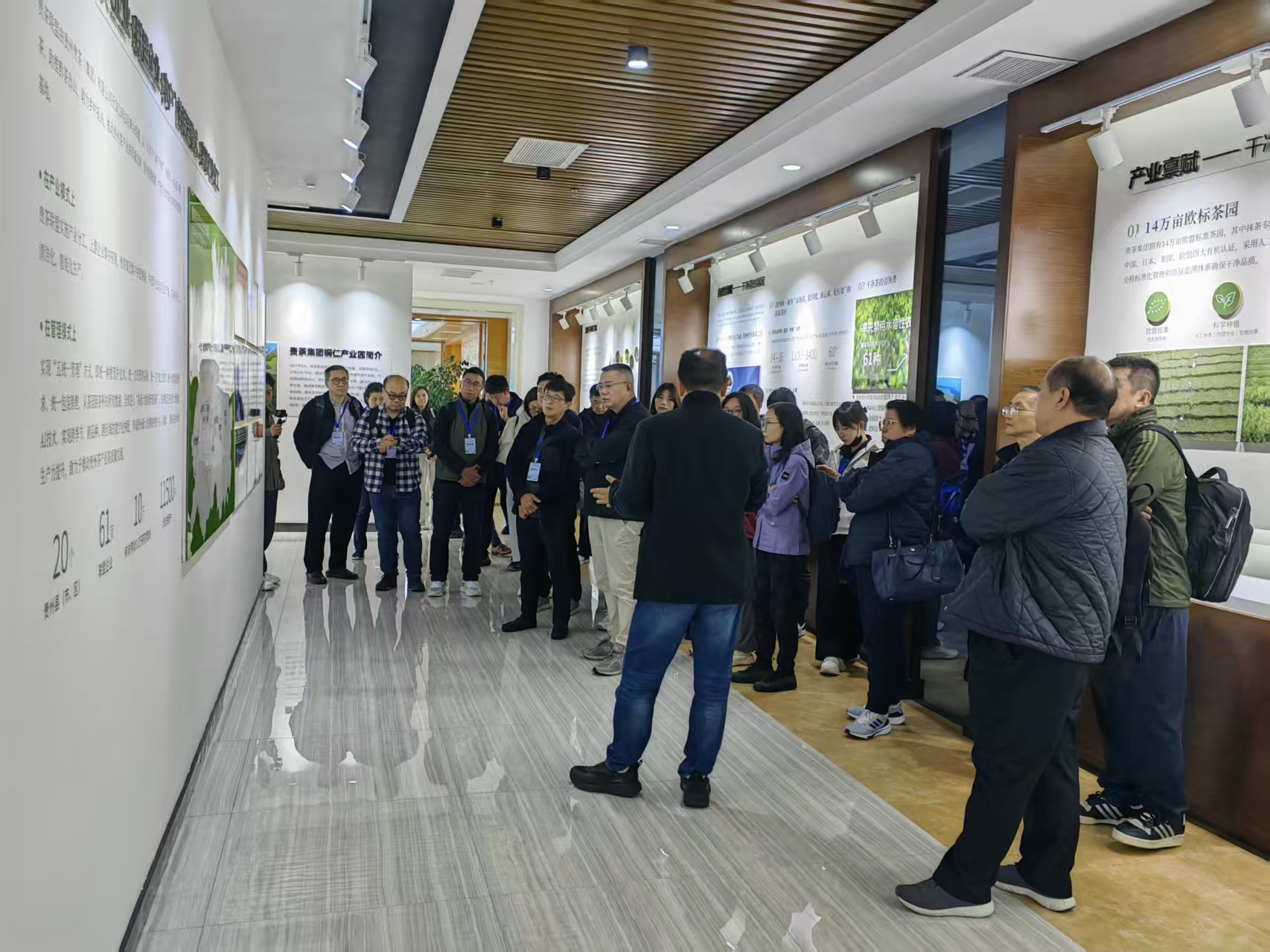 於上午約十一時,華文媒體代表團抵達行程首站貴茶集團銅仁產業園開展調研。貴茶集團是集茶葉種植、研發、生產、營銷及茶旅為一體的全產業鏈現代化茶企,在梵淨山下打造世界抹茶超級工廠,並擁有十四萬畝歐標茶園,部分茶園通過中國、日本、美國及歐盟四大有機認證。作為銅仁特色產業的標杆,這裡孕育的「梵淨山茶」涵蓋綠茶、紅茶、抹茶等多個品類,其中梵淨抹茶產銷量位居全國第一、全球第二,納入貴州「兩紅三綠一抹」產茶產業品牌,成為當地對外輸出的「綠色名片」。華文媒體代表團深入瞭解了茶葉種植、研發、生產加工工藝及產業化發展模式,瞭解銅仁如何將生態優勢轉化為經濟優勢,透過一片片綠葉感受「梵淨山珍·健康養生」的發展理念。