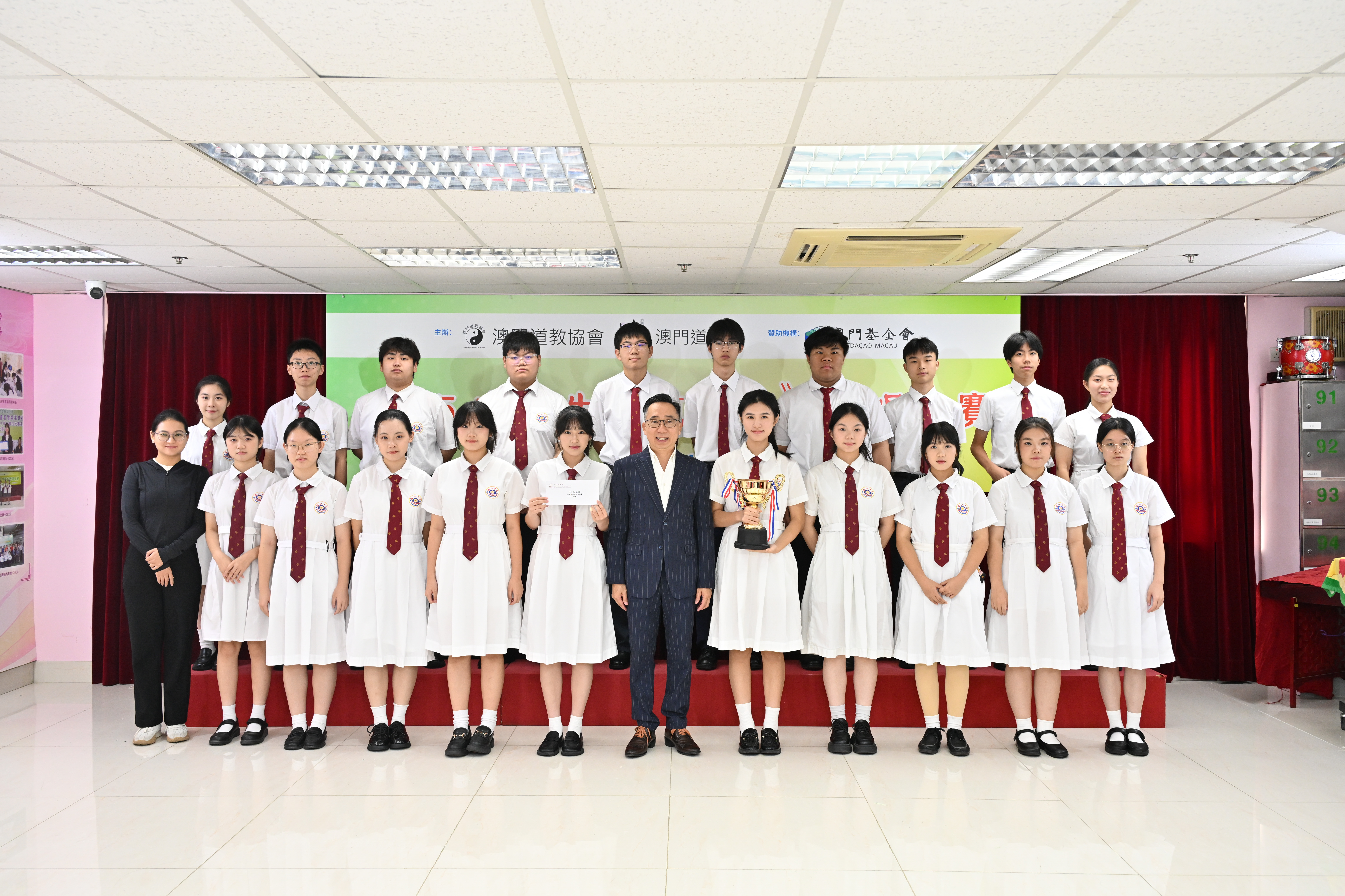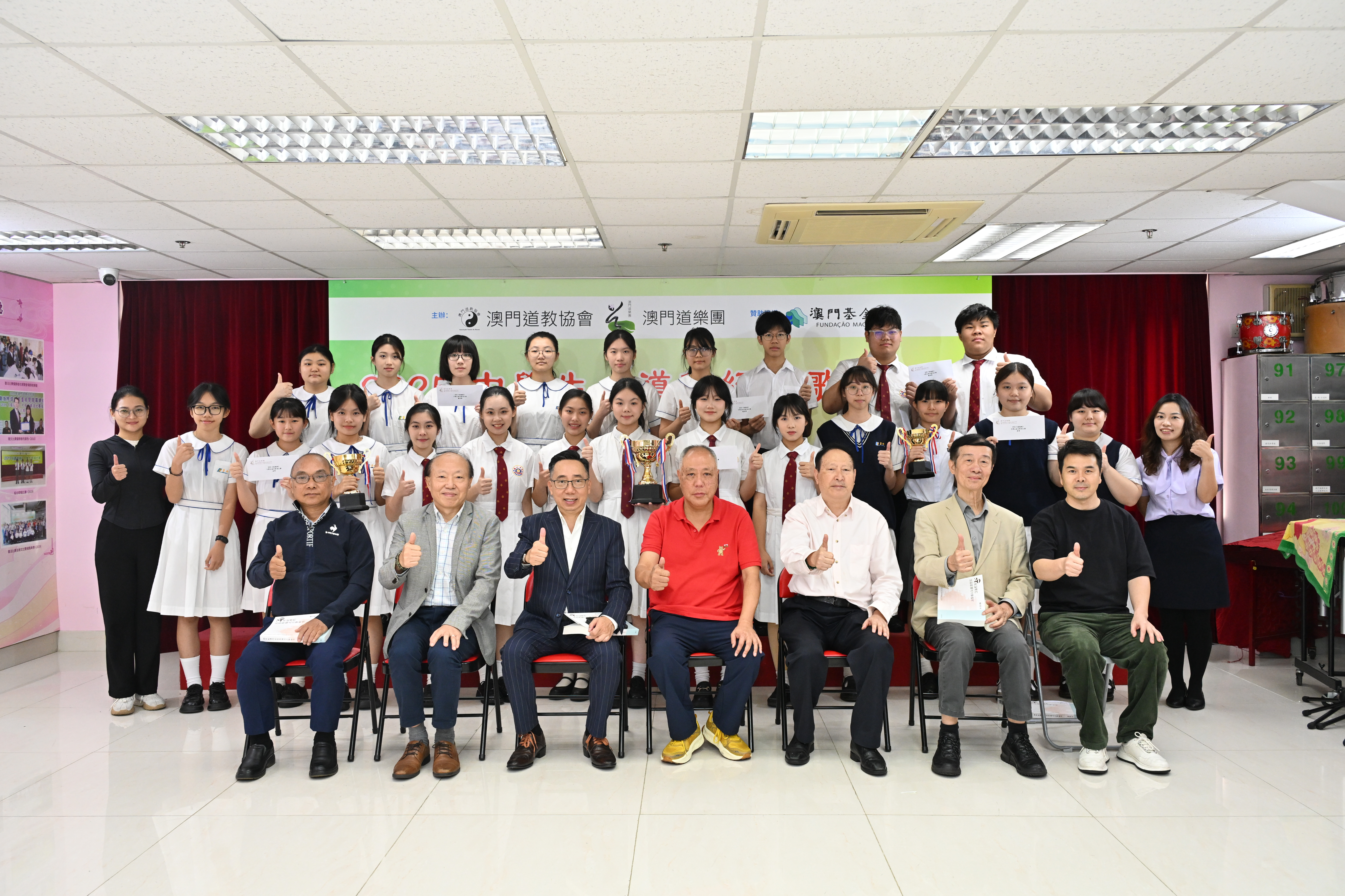 【即時新聞】為持續在校園及向青年人推廣《道德經》,由澳門道教協會及澳門道樂團合辦的2025中學生《道德經》歌唱比賽,於11月8日,假道教協會會址舉行決賽。來自本澳5所中學的合唱團及11支組合隊伍,逾百學生參加。是項比賽獲澳門基金會資助部分經費。評委由澳門道樂團音樂總監王忠人,澳門城市大學教授戴定澄,深圳大學音樂學院聲樂教授李廣達,深圳心聲藝術學校校長平曉峰,澳門城市音樂研究學會理事長洪少強組成。澳基會廳長黃棣樂,澳道協會長吳炳鋕出席並擔任頒獎嘉賓。