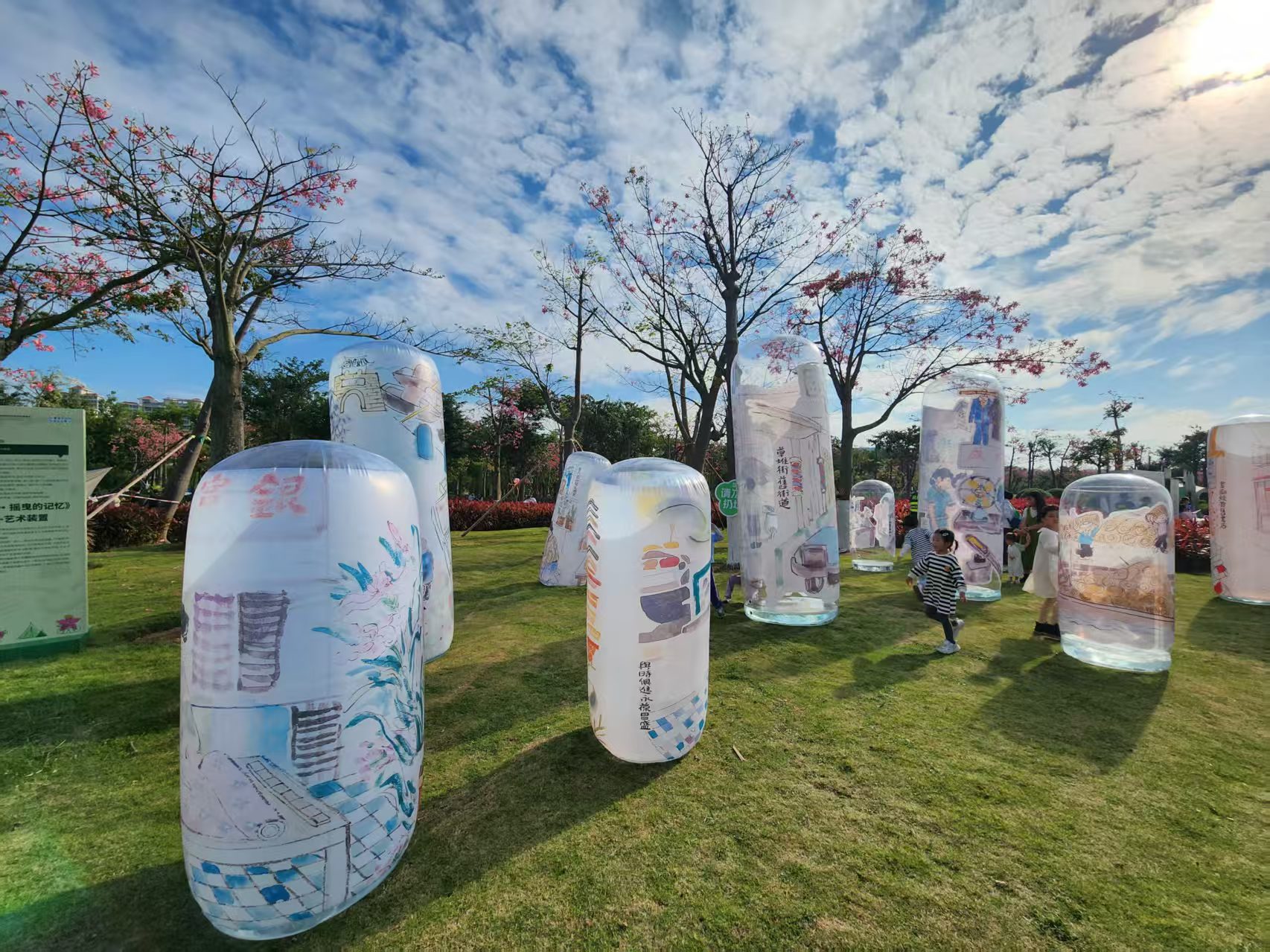 演員與觀眾零距離互動,孩子們在泡泡的世界裡奔跑歡笑,市民遊客紛紛拍照留念,花海長廊變成了一幅充滿笑聲與藝術氛圍的流動畫卷。