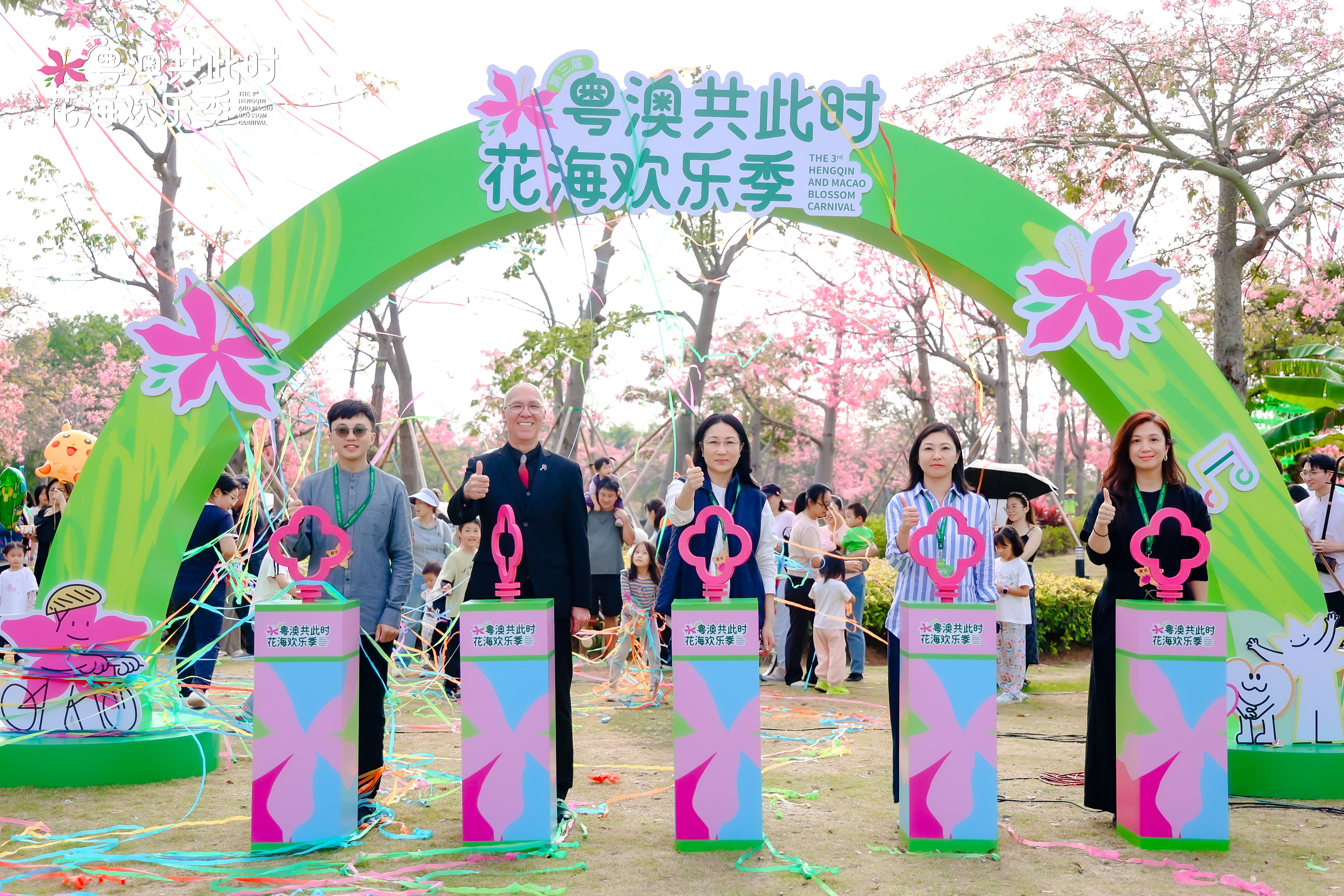 當日下午2時30分,橫琴粵澳深度合作區民生事務局局長馮方丹、副局長蘇凱慈,聯同澳門人樂隊隊長左文軒,澳門青年藝術家黎小傑、盧紹儀共同啟動發條裝置,象徵琴澳文旅合作的齒輪緩緩轉動,同時也標誌著第三屆“粵澳共此時”花海歡樂季正式開幕。