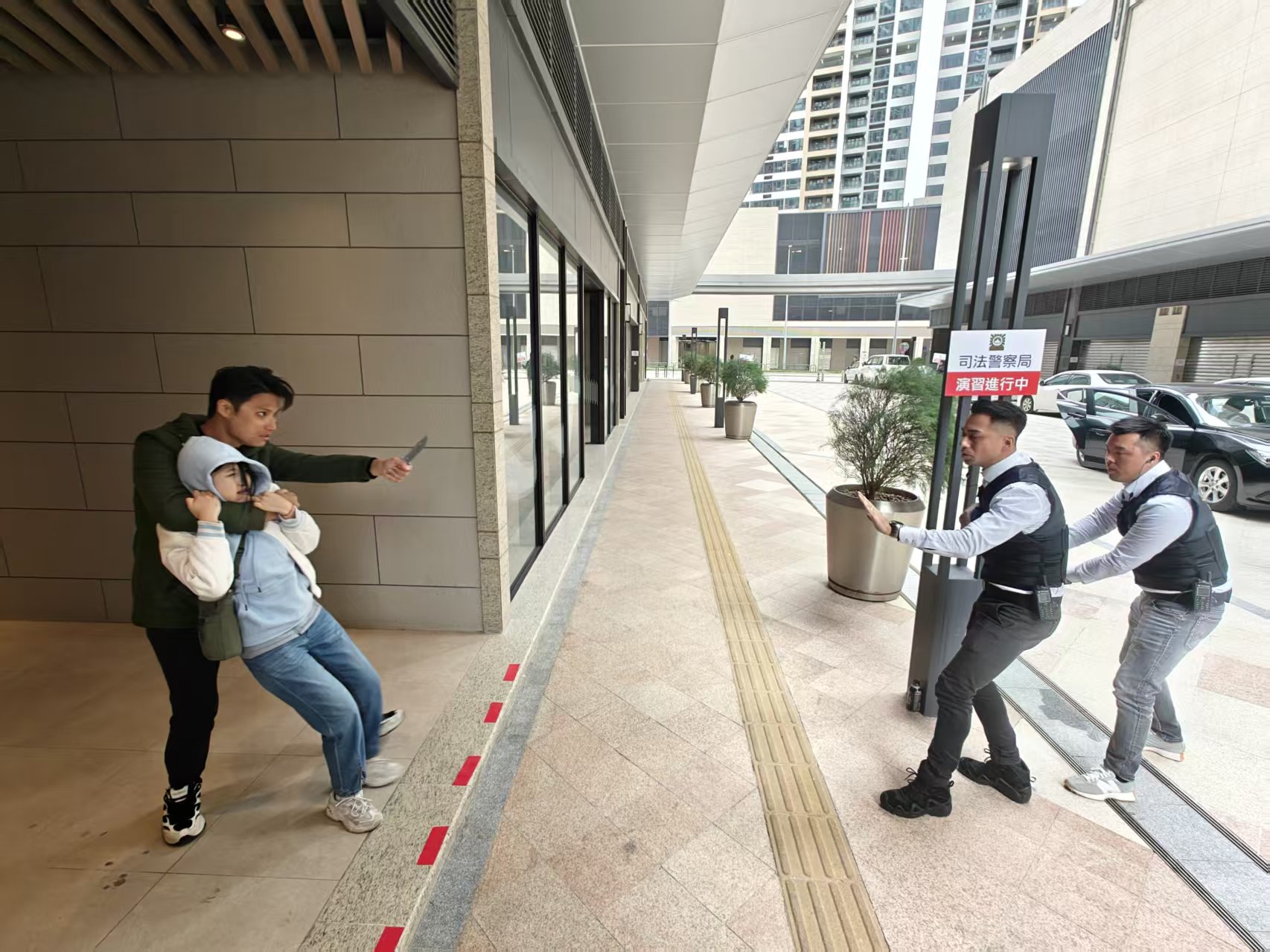 【即時新聞】為強化刑事偵查、警務聯絡、刑事技術及危機談判等單位在面對突發重大案件時的訊息通報、協調聯動與快速反應能力,司警局今日上午在黑沙環新填海區樂居一帶舉行應對嚴重案件和危機談判綜合演練,模擬本澳發生一宗由搶劫引發兇殺及挾持人質的複合型嚴重罪案,司警局多個刑偵及法證部門隨即展開調查搜證、追查賊蹤、解救人質及拘捕匪徒等工作。