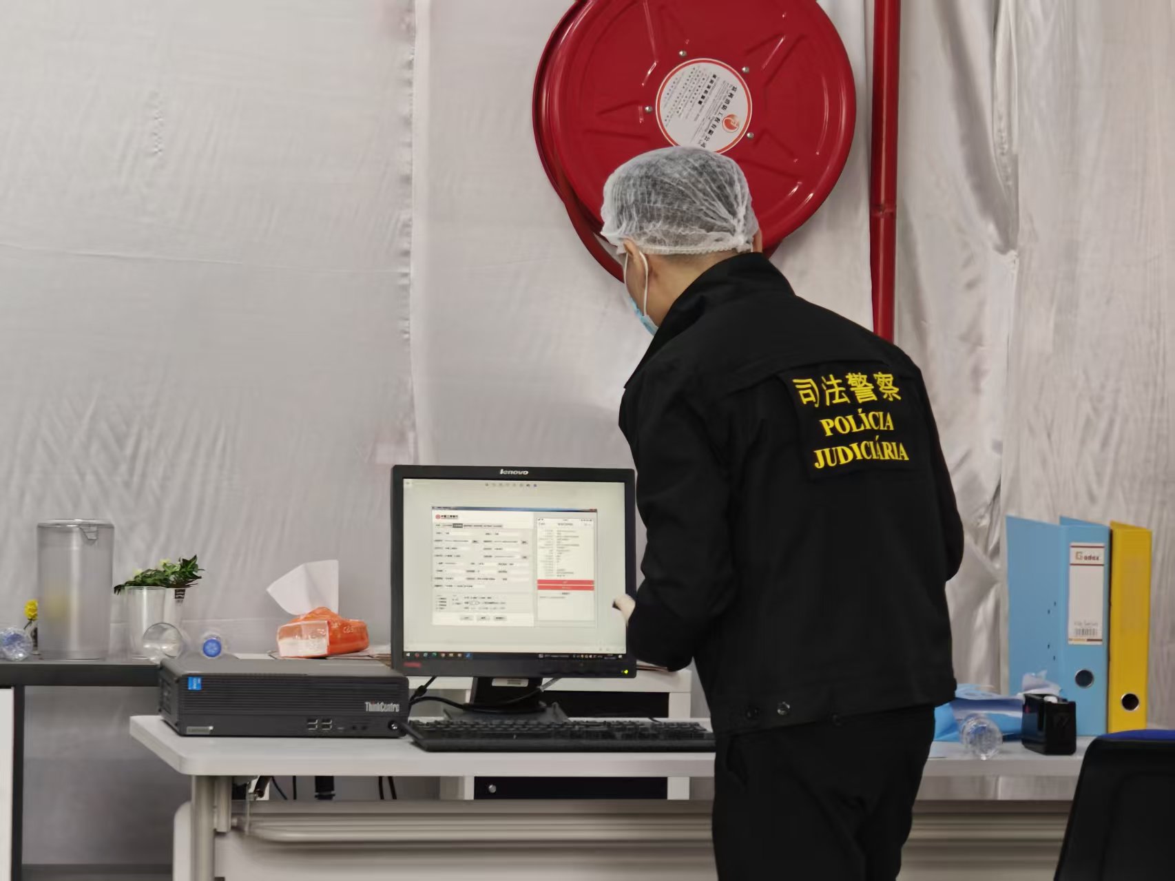 司警局接報後迅速啟動嚴重罪案犯罪現場勘查機制,即時通報案情資訊並調動人力,全面展開調查蒐證與營救行動。期間,司警人員綜合運用多種刑偵與現場勘查技術,迅速查清作案經過,鎖定匪徒身份、所用車輛及逃走路線,立即加強各出入境口岸的警力佈防,並加派刑偵人員展開追緝。同時,警方聯絡相關銀行對涉案帳戶採取緊急止付措施,成功凍結全部贓款。演練中,司警局法證單位首次應用「現場勘查信息管理系統」,將現場檢獲的一枚指紋痕跡即時遠程連結至局內「自動化指紋識別系統」,迅速查明該指紋所屬者身份及其警務紀錄資料,大幅提升偵查效率。