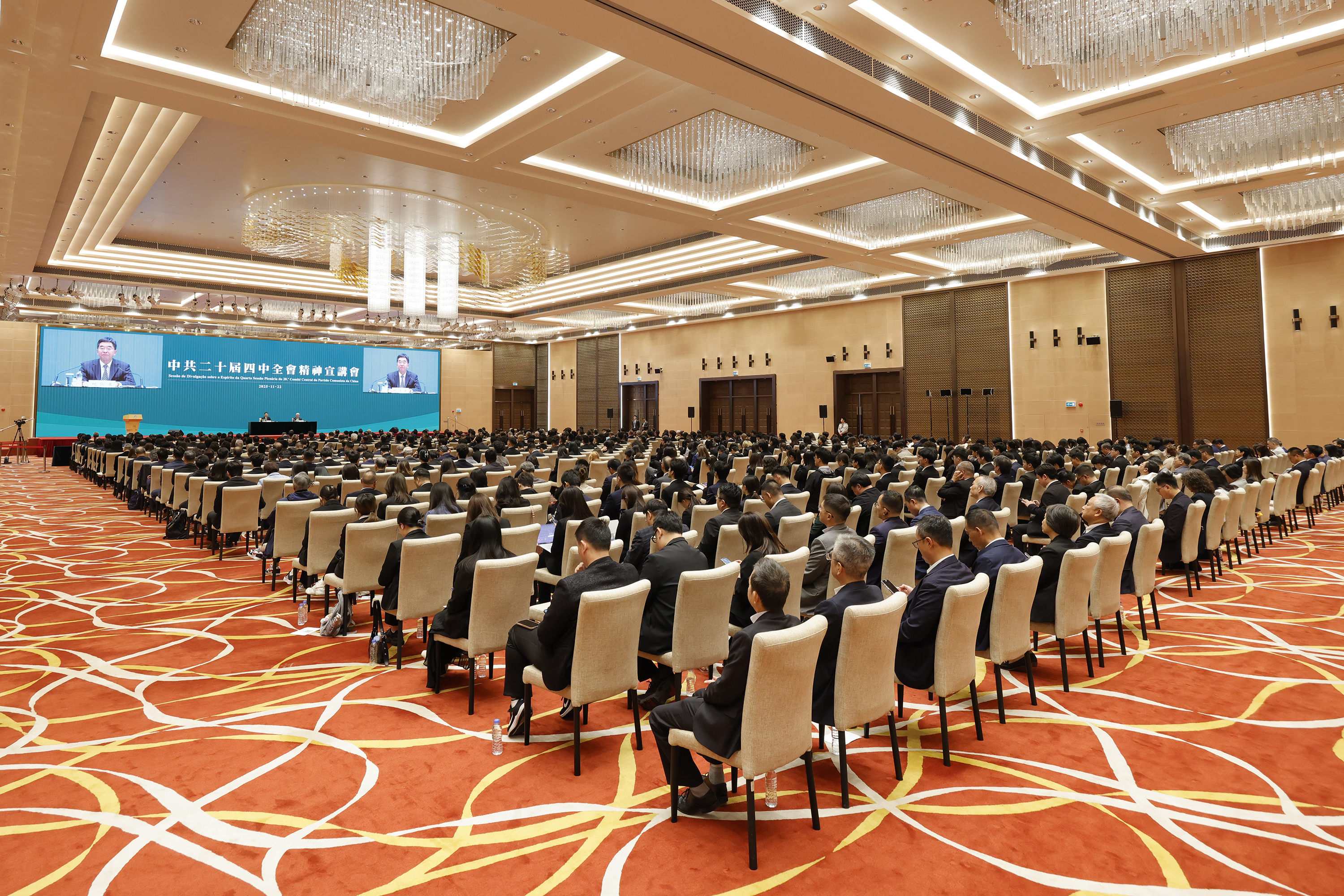 【即時新聞】澳門特區政府今(22)日下午舉辦第二場“中共二十屆四中全會精神宣講會”,中央宣講團成員,中國科學院院長、黨組書記侯建國和中央宣講團成員,中央財經委員會辦公室副主任、中央農村工作領導小組辦公室副主任祝衛東,向本澳社會各界人士代表宣講全會精神。