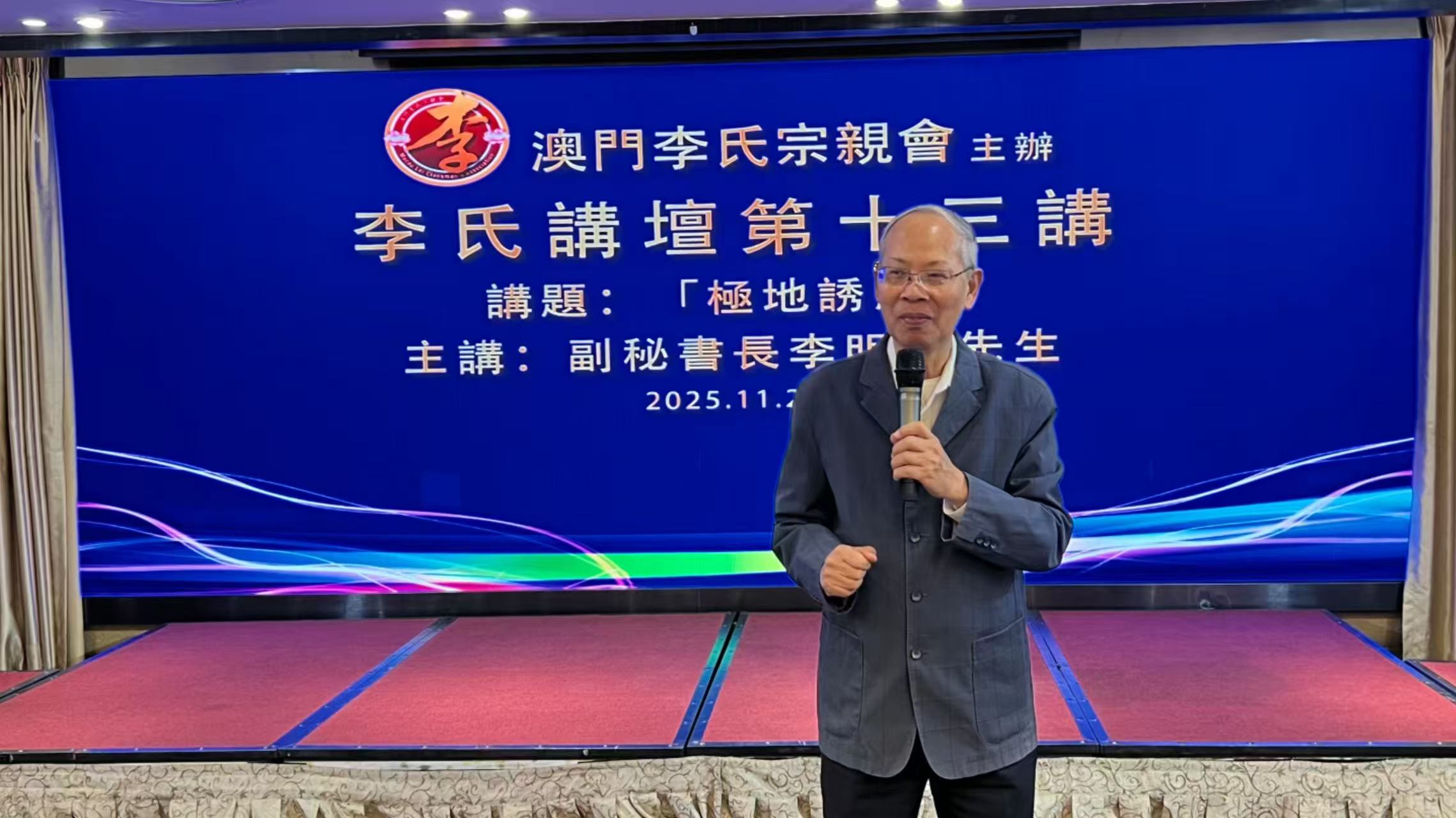 【即時新聞】澳門李氏宗親會昨日上午十一時假萬豪軒一樓蓮花廳舉行「李氏講壇」第十三講,由宗親會副秘書長李明基主持題為「極地誘惑」的分享會,暢談早前遊極地的難得體會與心得。