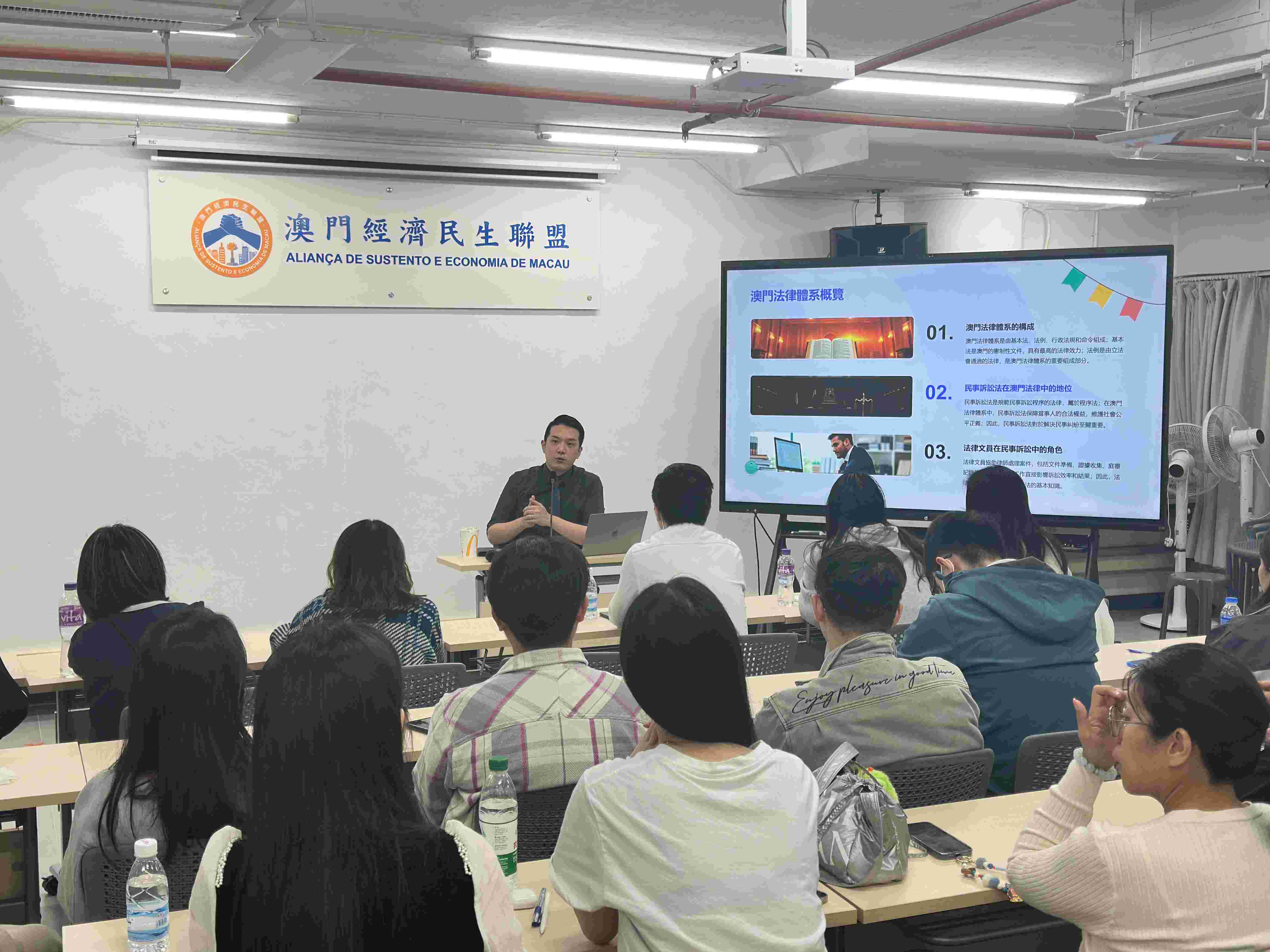 是次培訓課程邀請執業律師甘智光,法律專家殷鈴貽擔任課程導師。課程採用「講授+考核」的雙軌教學模式,力求讓每一位學員學有所成。課程內容設計豐富而具系統性,包含介紹澳門勞動關係法概述、國際私法概述、澳門登記及公證法概述以及法律文員的角色和責任、法律事務技巧、法律文書簡介和草擬等。教學過程中,導師穿插真實案例進行分析與講解,旨在將理論知識融入實例中,從而讓學員能夠更清晰了解相關法律法規的應用。