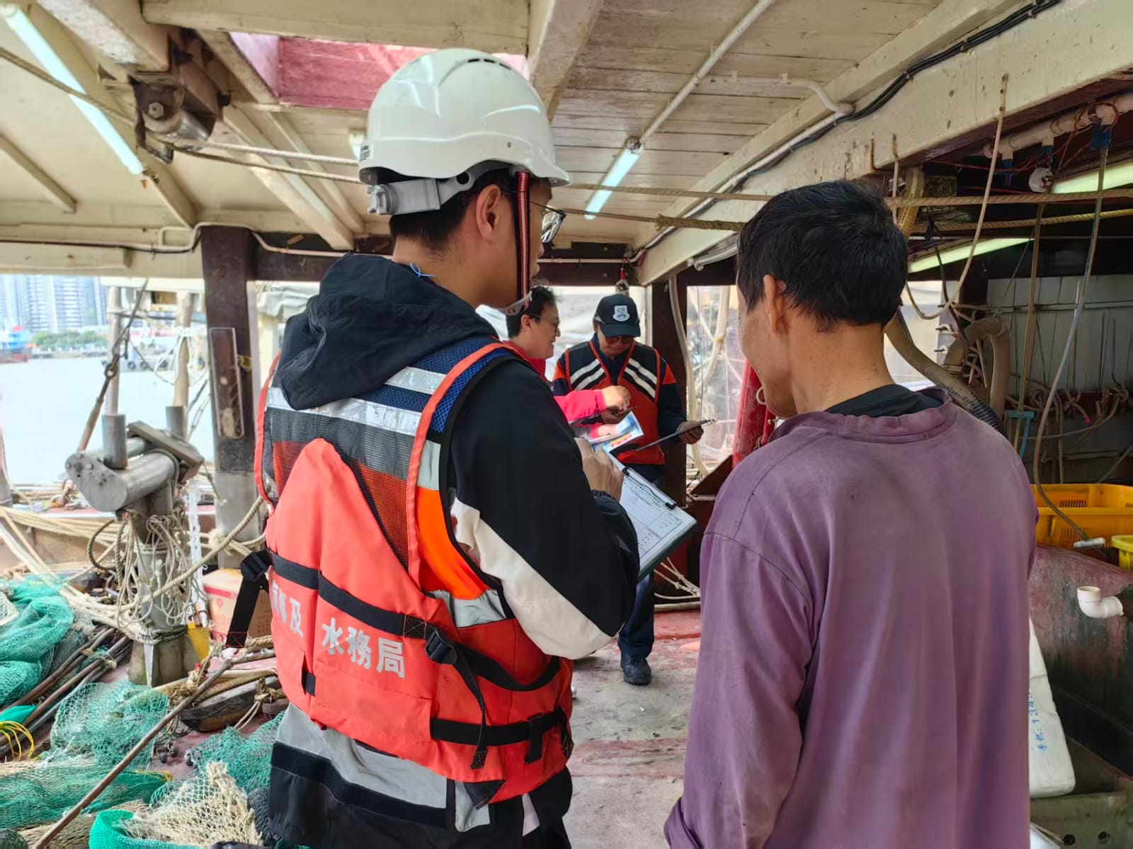 【即時新聞】為保障海事安全,海事及水務局近日對內港一帶的漁船及貨運碼頭進行安全排查,並向業界宣導防火安全知識。