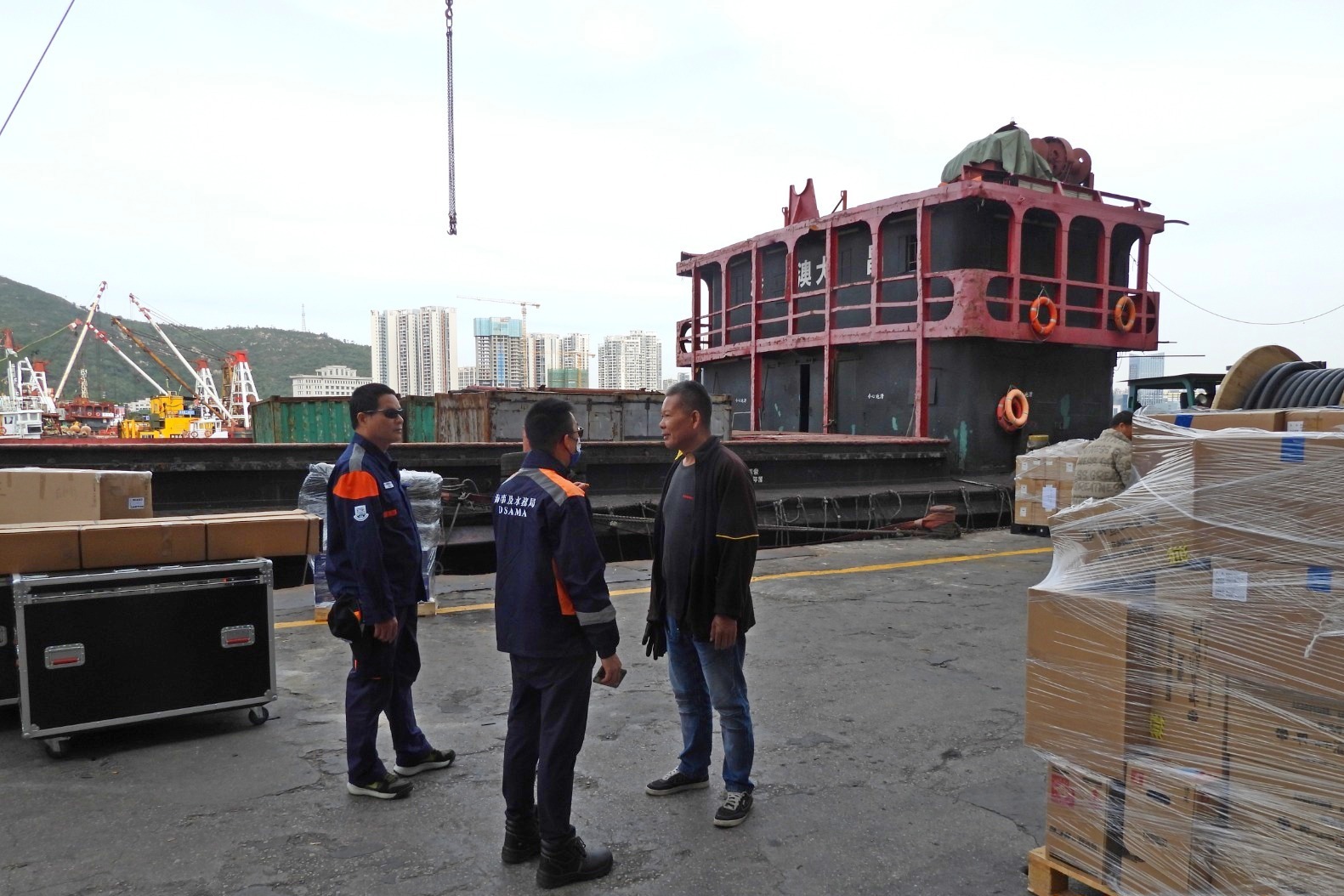 海事及水務局週四(27日)起到九澳及內港對多個貨運碼頭進行安全巡查,提醒碼頭經營人注意用電安全,做好防火措施,並妥善放置易燃物品並配備合規格的滅火筒。