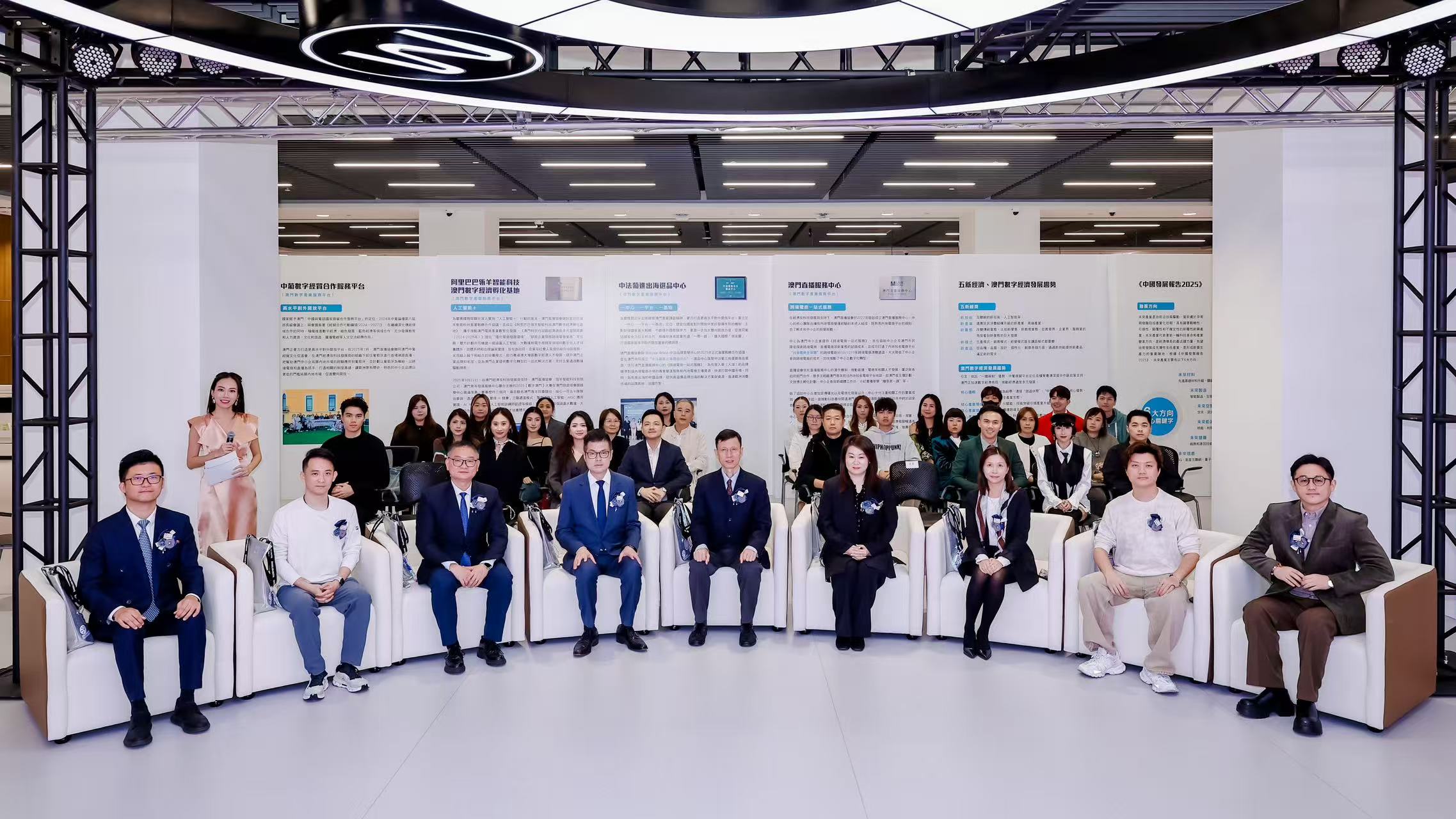 活動下午三時假中葡綜合體澳門直播服務中心舉行,中聯辦宣傳文化部副部長殷汝濤、處長張偉,招商投資促進局代主席李藻森,勞工事務局局長陳元童,經濟及科技發展局經濟合作處處長陳凱詩,徐其蓓,蒲公英(廣州)數字營銷有限公司首席營銷師楊澤宏、首席執行官莊豐榮,直播協會副會長傅騰龍、理事長戴顯揚,以及本地商家代表、達人主播等出席。