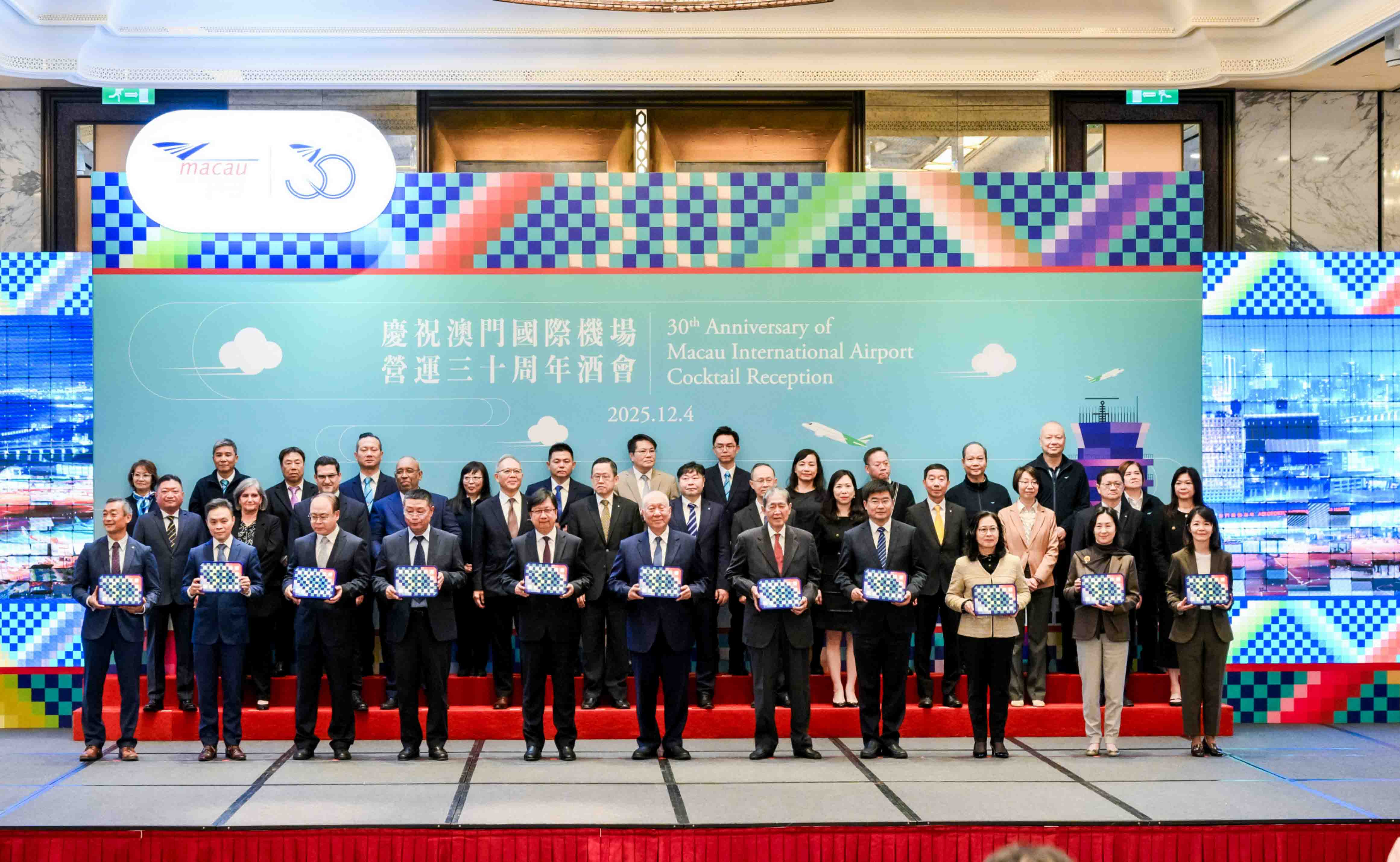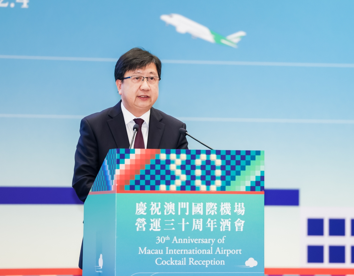 【即時新聞】澳門國際機場專營股份有限公司(CAM)下午在澳門美獅美高梅舉辦澳門國際機場營運30周年慶祝酒會,行政長官代表、運輸工務司司長譚偉文出席主禮並致辭,期望澳門國際機場持續把握民航發展機遇,肩負聯通世界的使命,為澳門經濟適度多元與國際戰略發展注入新動能。