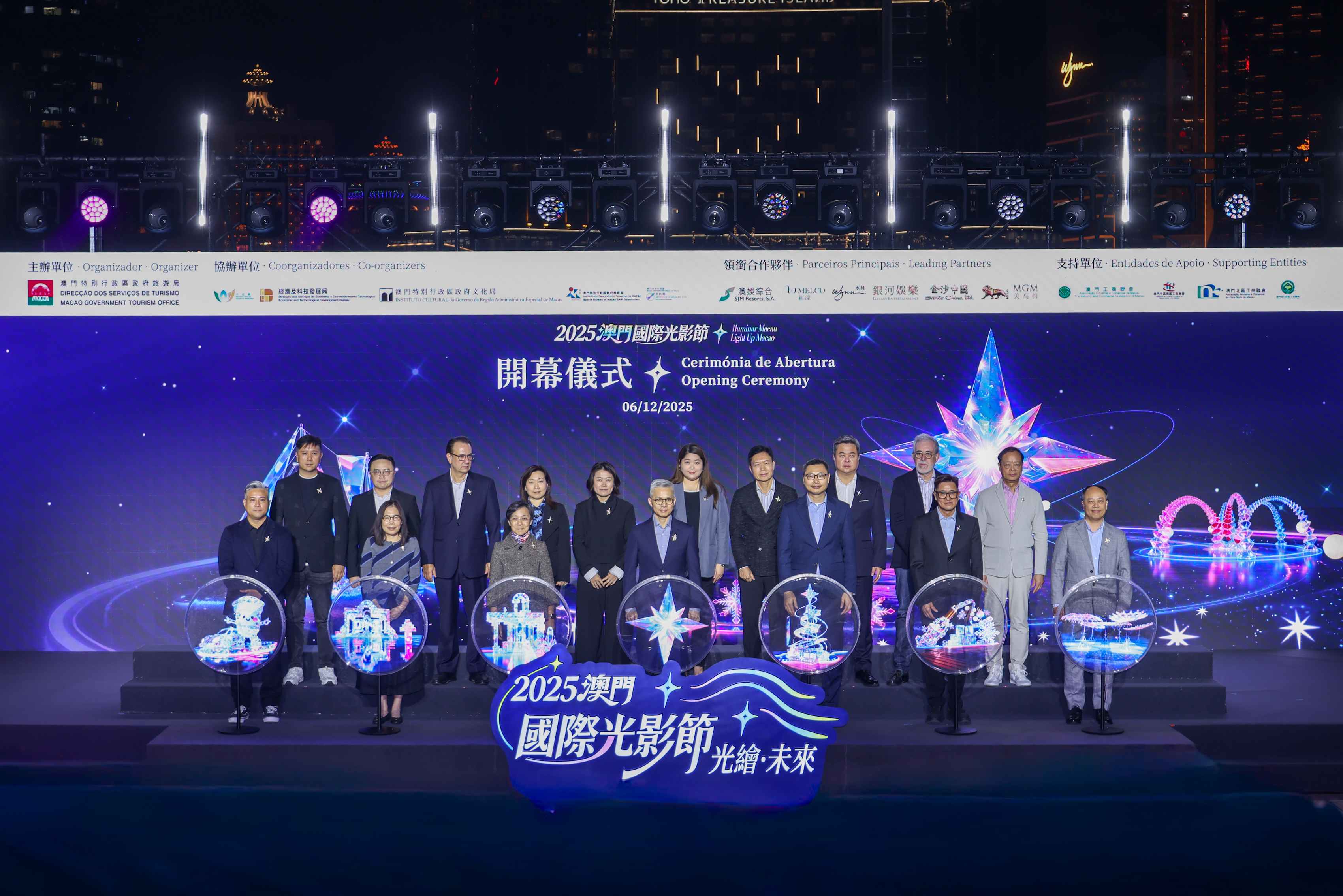 開幕儀式在南灣湖水上活動中心舉行,經濟財政司司長戴建業等主持開幕儀式。旅遊局局長文綺華致辭時表示,光影節活動不僅是一項展示澳門“旅遊+盛事”跨界融合的項目,更是一項美化城市空間、增強社區凝聚力的盛事活動。期望活動可以引導居民和旅客深入社區,在周邊商戶消費,帶動在地商機,進一步促進社區旅遊與夜間經濟。