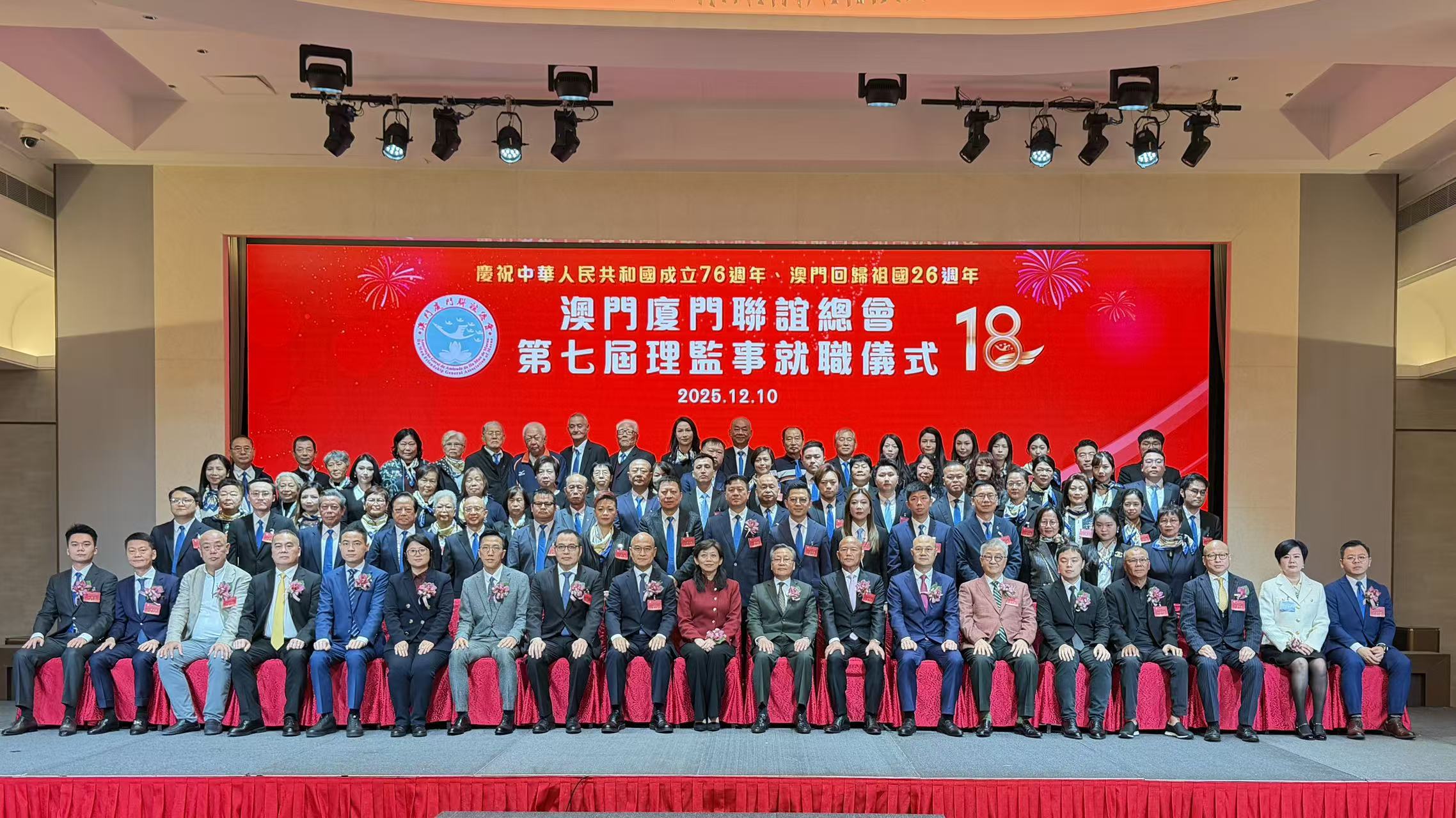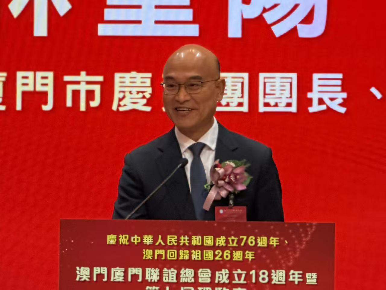 【即時新聞】 澳門廈門聯誼總會今晚七時假旅遊塔會展娛樂中心三樓宴會廳舉行慶祝澳門回歸祖國二十六周年,該會成立十八周年暨第七屆理監事就職及澳門廈門青年聯誼會成立暨首屆理監事就職典禮。中聯辦協調部部長仇昱、廈門市政協副主席林重陽、澳區全國人大常委高開賢以及全國政協委員、澳門福建同鄉總會會長陳明金等人主禮。會長高美燕語勉兩會理監事堅守愛國愛澳愛鄉的創會宗旨,持續凝聚鄉賢,搭建廈澳兩地交流橋樑。