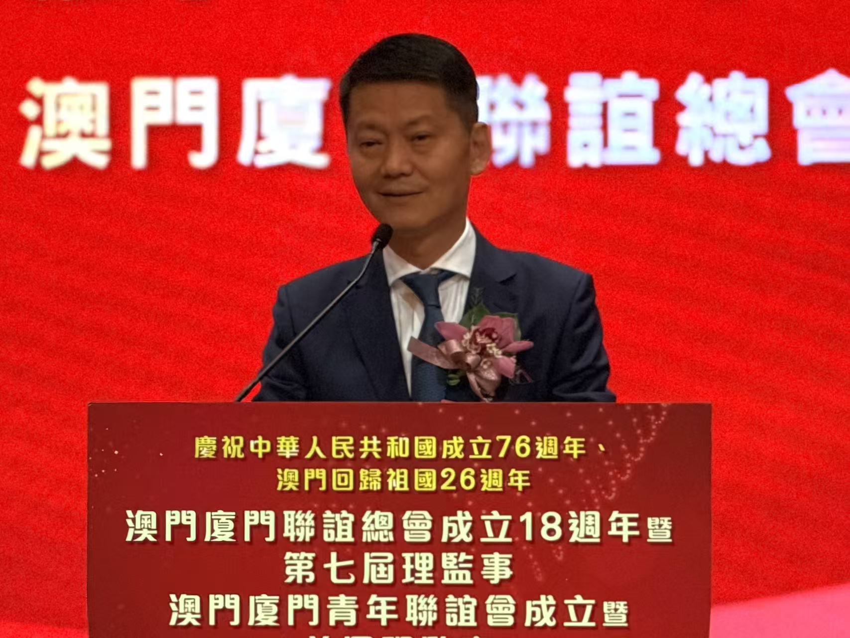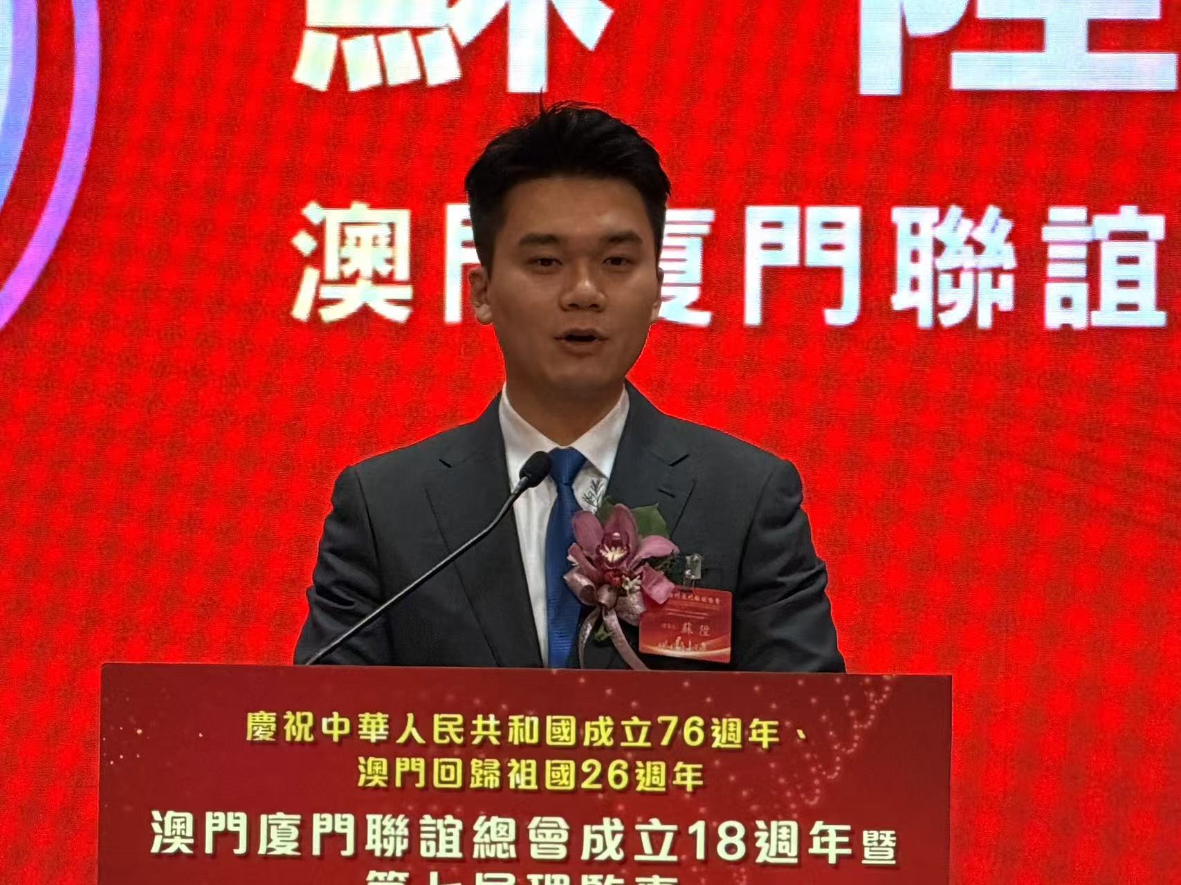理事長蘇陞在致辭中表示,將與新一屆理事會一起,繼續傳承聯誼總會的優良傳統,全力推動會務發展,凝聚鄉親力量,深化澳廈交流合作,搭建更高層次橋樑,同時,加強愛國愛澳教育及青年培育,深化文化認同,推動薪火相傳。