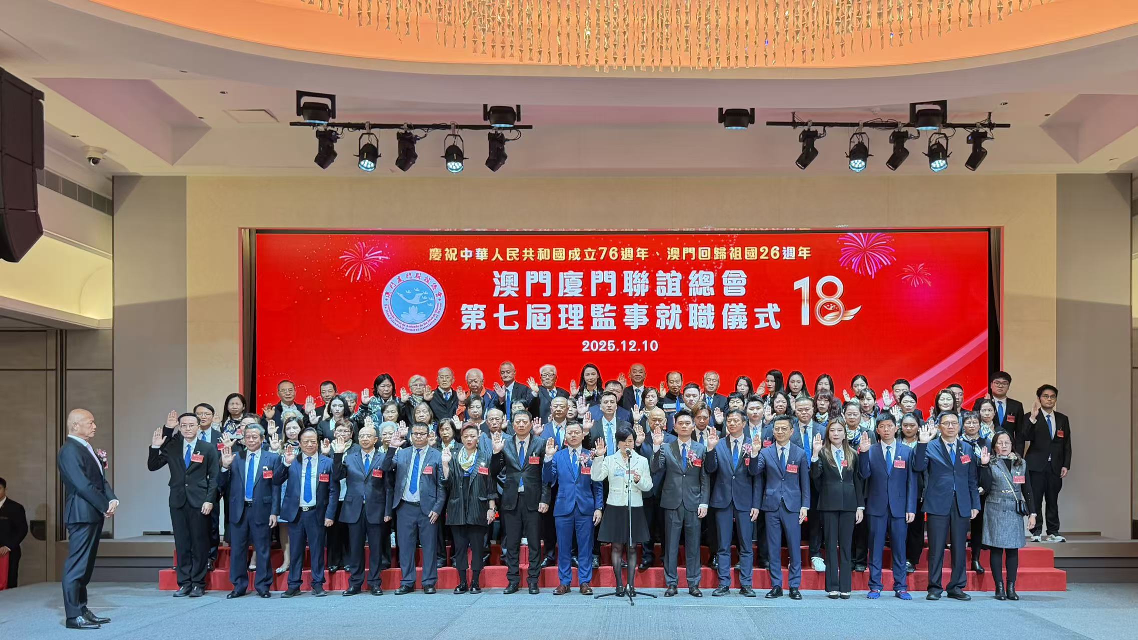 隨後,第六屆會長蘇建華將會印轉交予第七屆會長高美燕後,該會第七屆理監事在全國政協委員、澳門福建同鄉總會會長陳明金監誓下宣誓就職,青年會第一屆理監事在澳門行政會委員、立法議員宋碧琪監誓下宣誓就職。