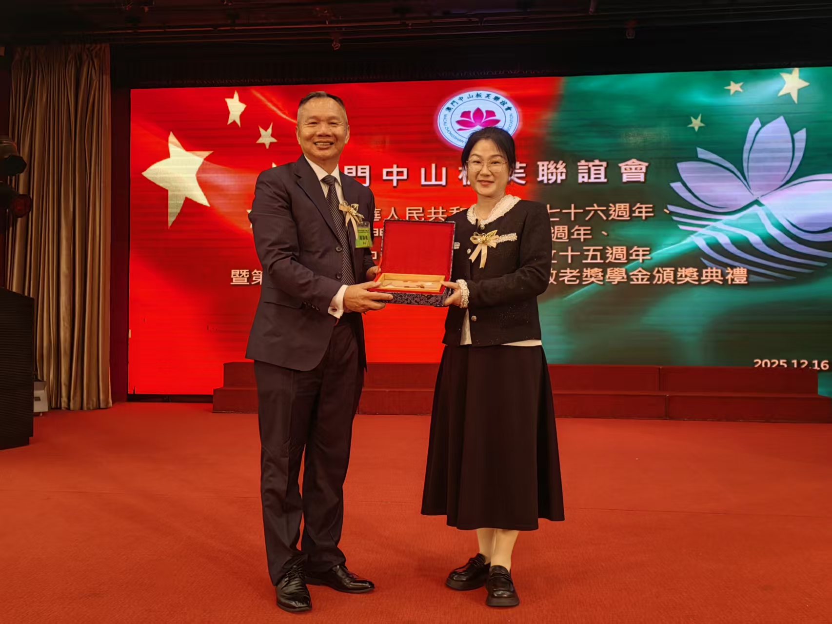典禮晚上假萬豪軒舉行,全國政協常委、立法會副主席何潤生,澳區全國人大澳區代表、街坊會聯合總會會長吳小麗,中聯辦社會發展部處長羅振宇, 中山市委統戰部四級調研員簡倩怡,聯絡科二級主任科員黃璜,中山板芙鎮黨委副書記、鎮長倪小平,立法議員、街坊會聯合總會副理事長梁鴻細、顏奕恆,街坊會聯合總會監事長、該會榮譽會長梁慶球,會長蕭錫權、理事長林焯佳,以及數百社會各界賢達、旅澳鄉親出席。